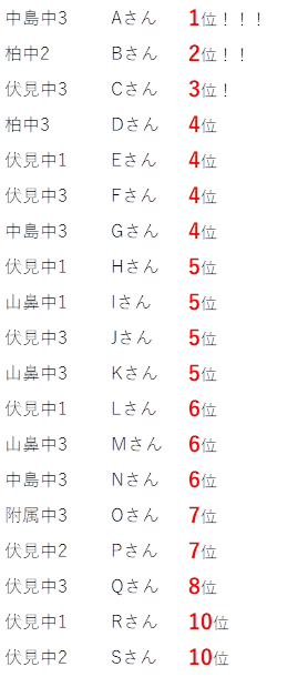 惜しくも今回はTOP10に届かなかった生徒たちも,みなさんの努力は私たち講師もよく知っています。