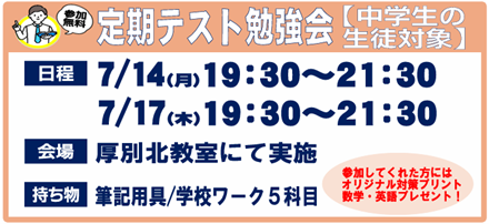 道コンも8月にありますが、厚別北中や厚別中は夏休み後すぐに定期テストがあります。
