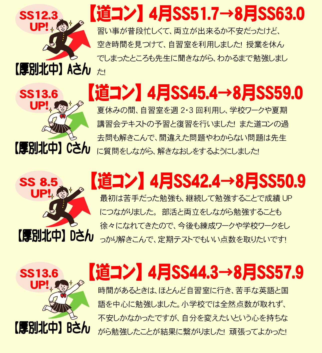 本日は、8月道コンで大きく成長した生徒の一部をご紹介していきます!