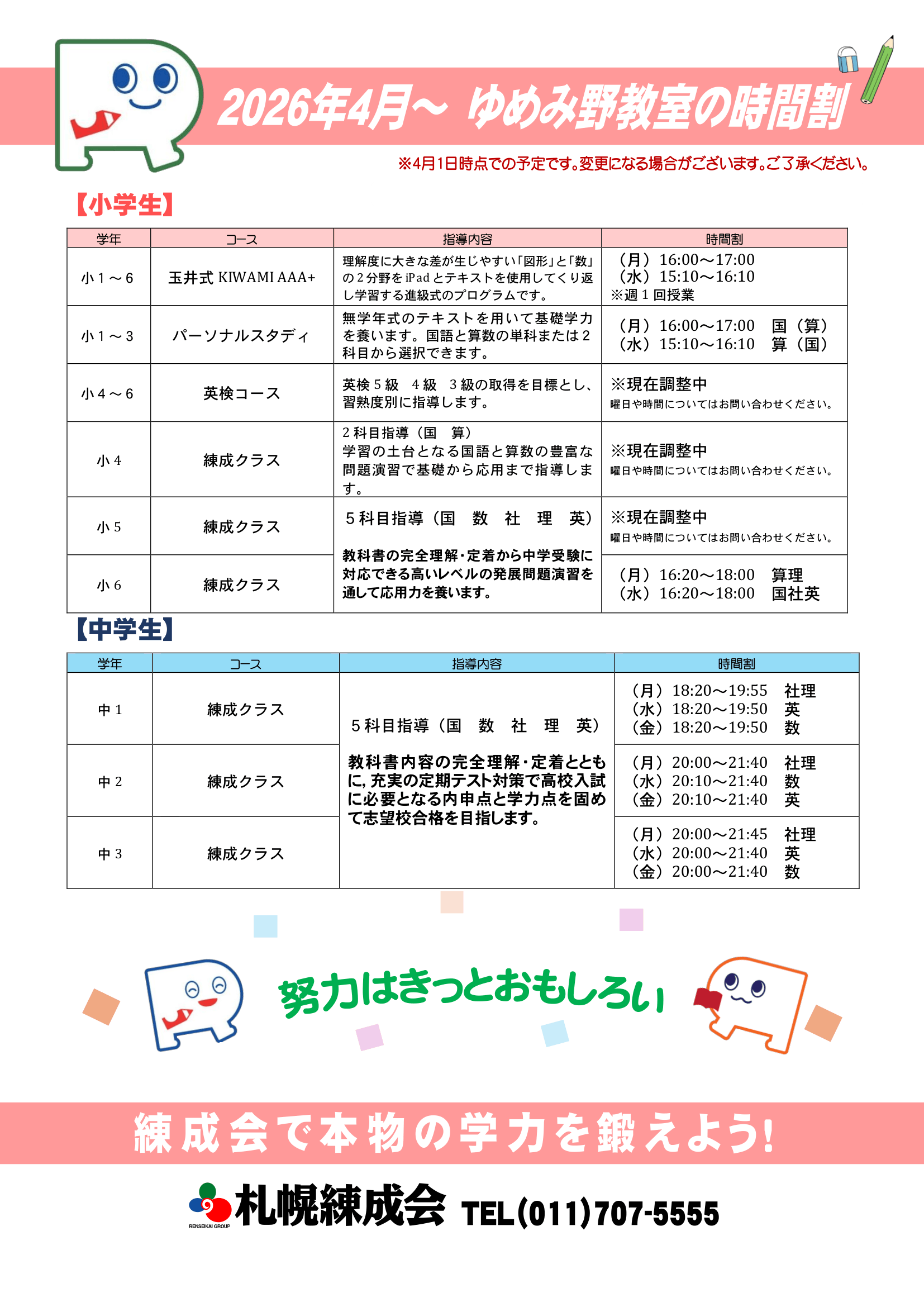 詳しくはコチラ → 高校入試は中1から? 北海道公立高校入試の仕組みについて(ゆめみ野教室)