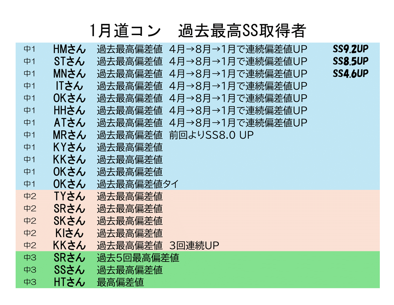 1月学力コンクール(道コン)結果①【千歳勇舞教室】
