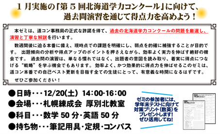 そこで、練成会厚別北教室では、「道コン攻略ゼミ」を実施予定です♪