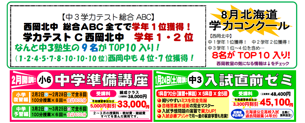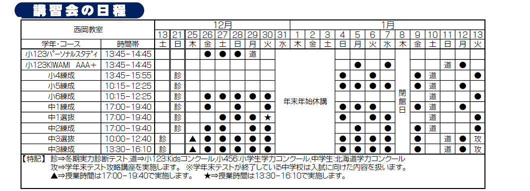 札幌練成会 西岡教室からのお知らせ
