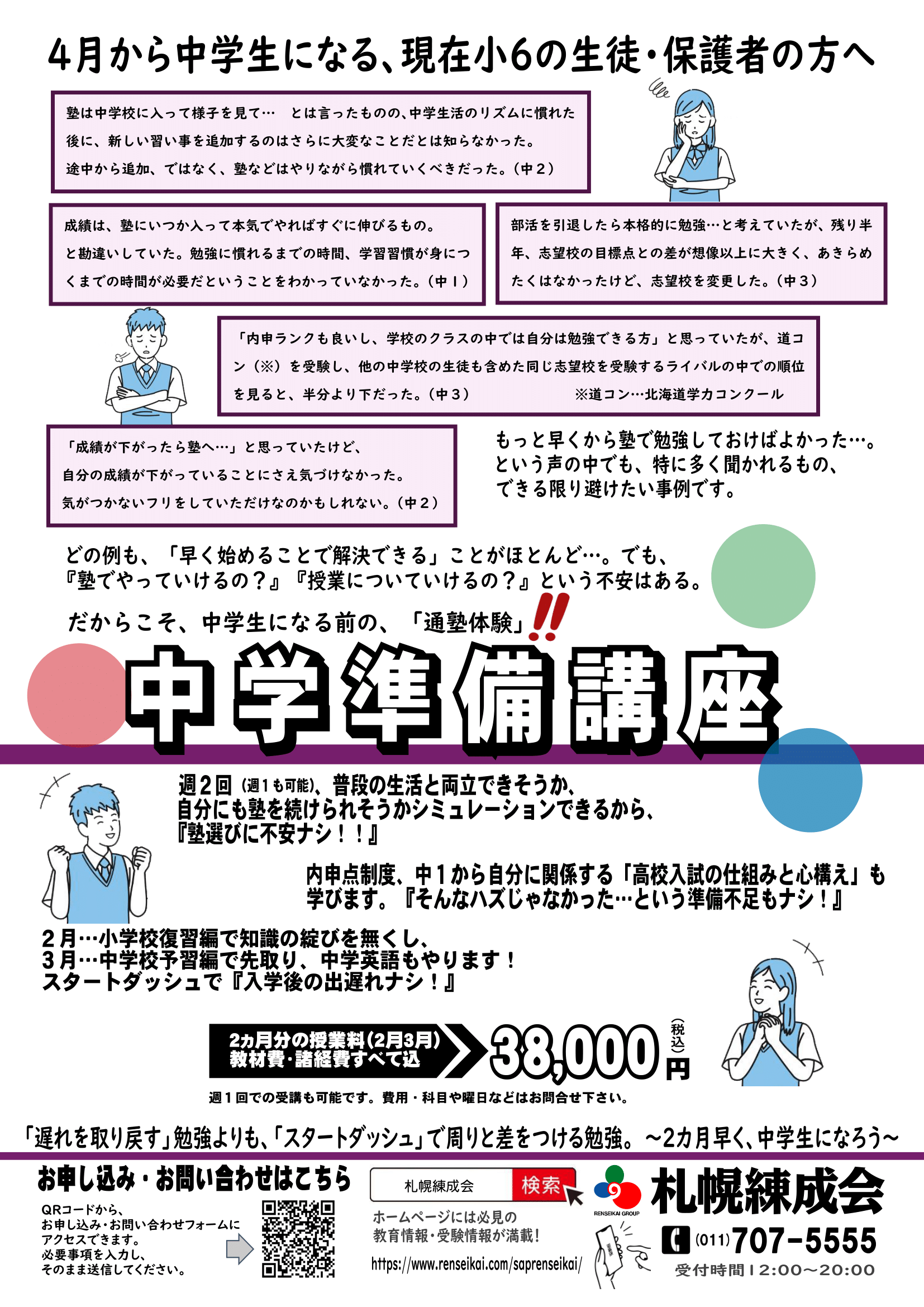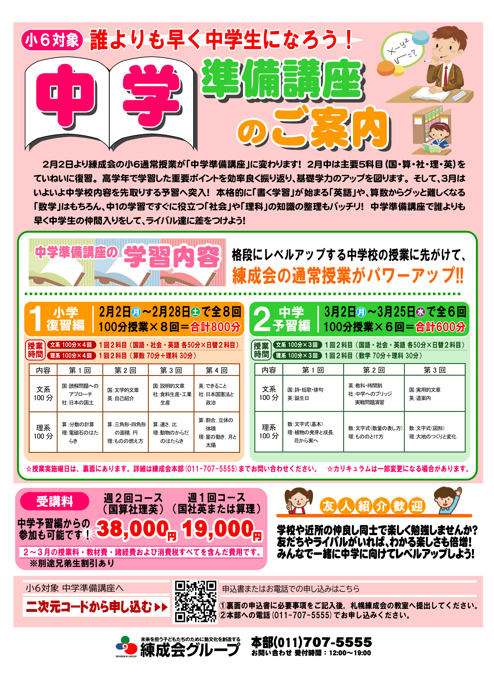 2月3月限定、小6対象の『中学準備講座』のご案内です。