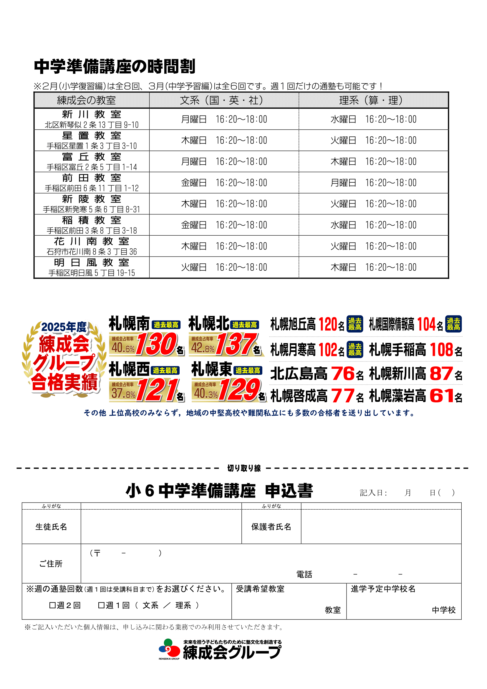 札幌練成会 前田教室からのお知らせ