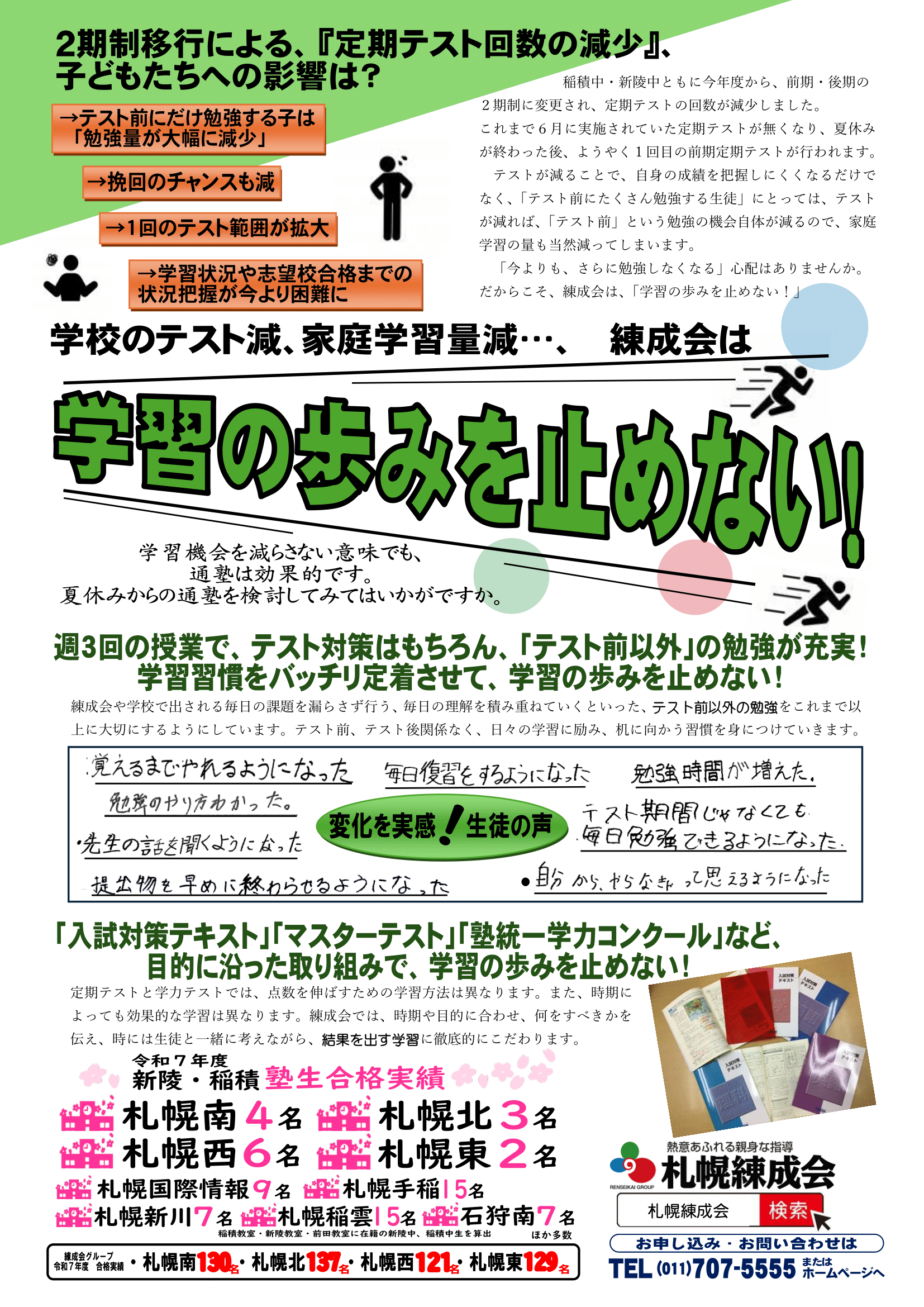 2期制導入!子どもたちはもっと勉強しなくなる? ~夏期講習は札幌練成会へ~(稲積教室)
