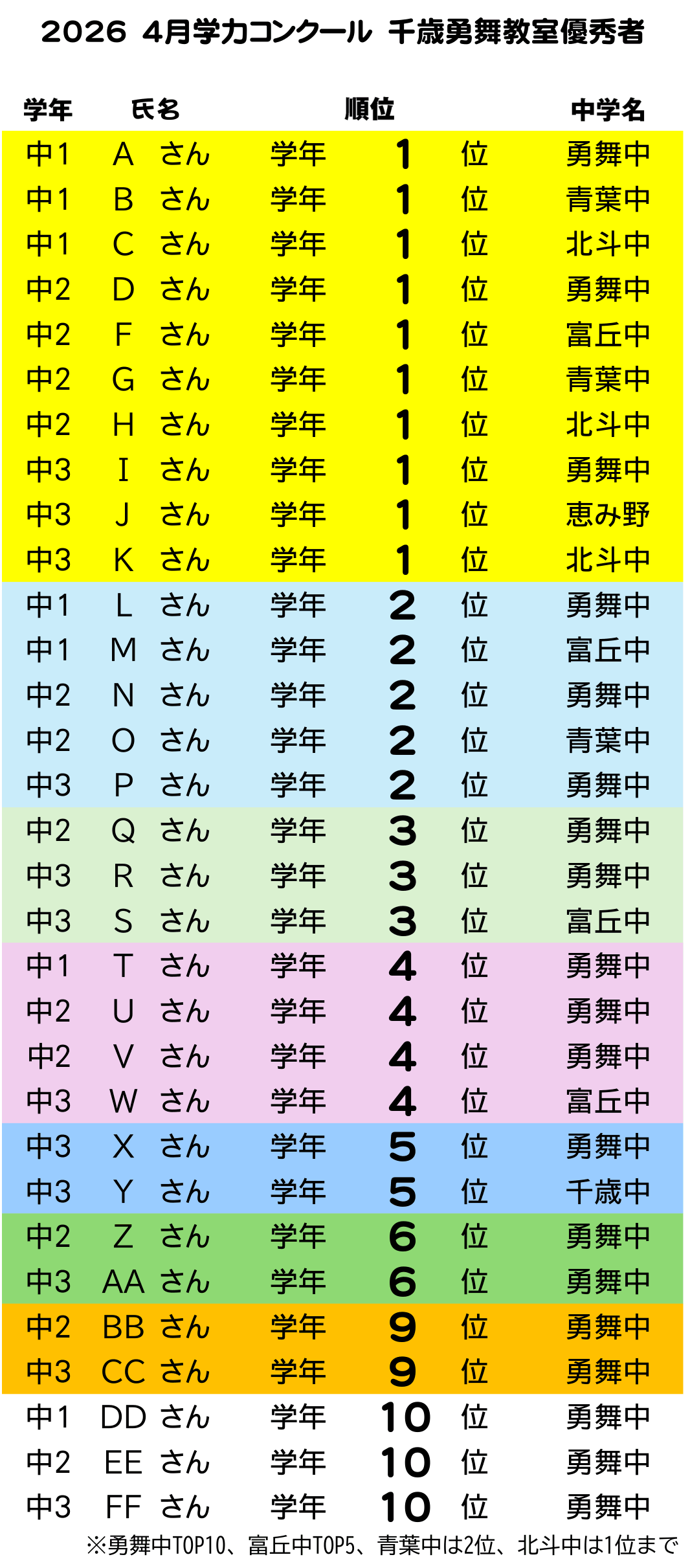 4月学力コンクール結果発表!(千歳勇舞教室)