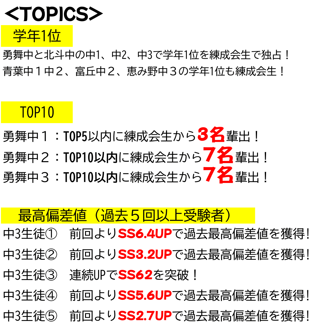 さて、春休み中に実施されました、北海道最大級のオープンテスト「北海道学力コンクール」において、練成会生は素晴らしい結果を残しました。