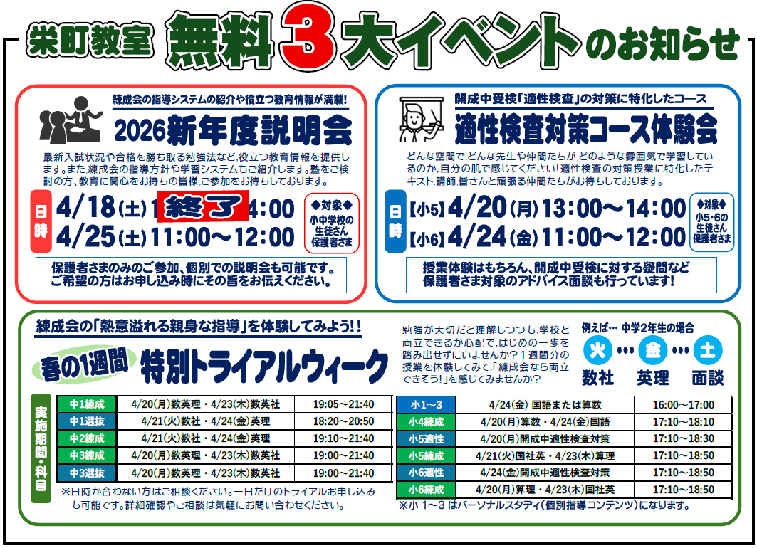 札幌練成会 栄町教室からのお知らせ