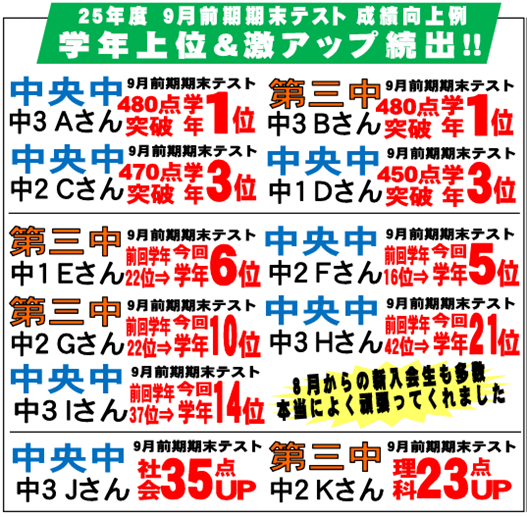 第三中1・2年生対象の公開対策授業を追加しましたのでぜひご覧ください。