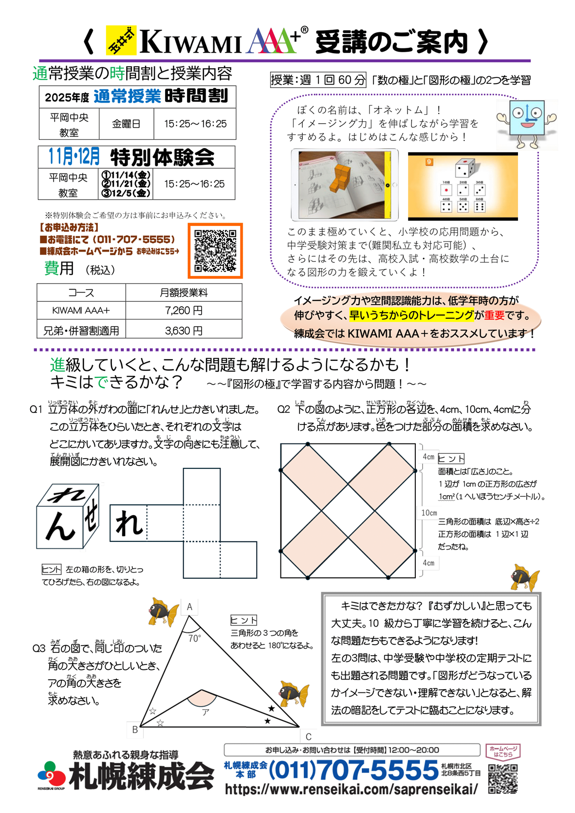 KIWAMI AAA+体験会のご案内!(平岡中央教室)