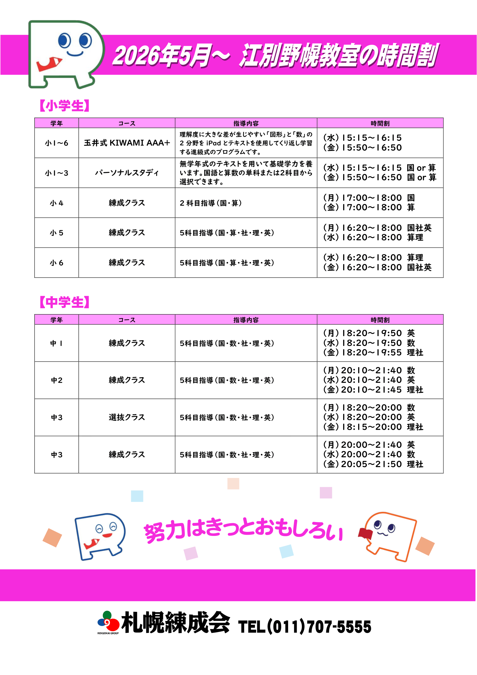 - NEW 【時間割】5月 通常授業のお知らせ(江別野幌教室)
