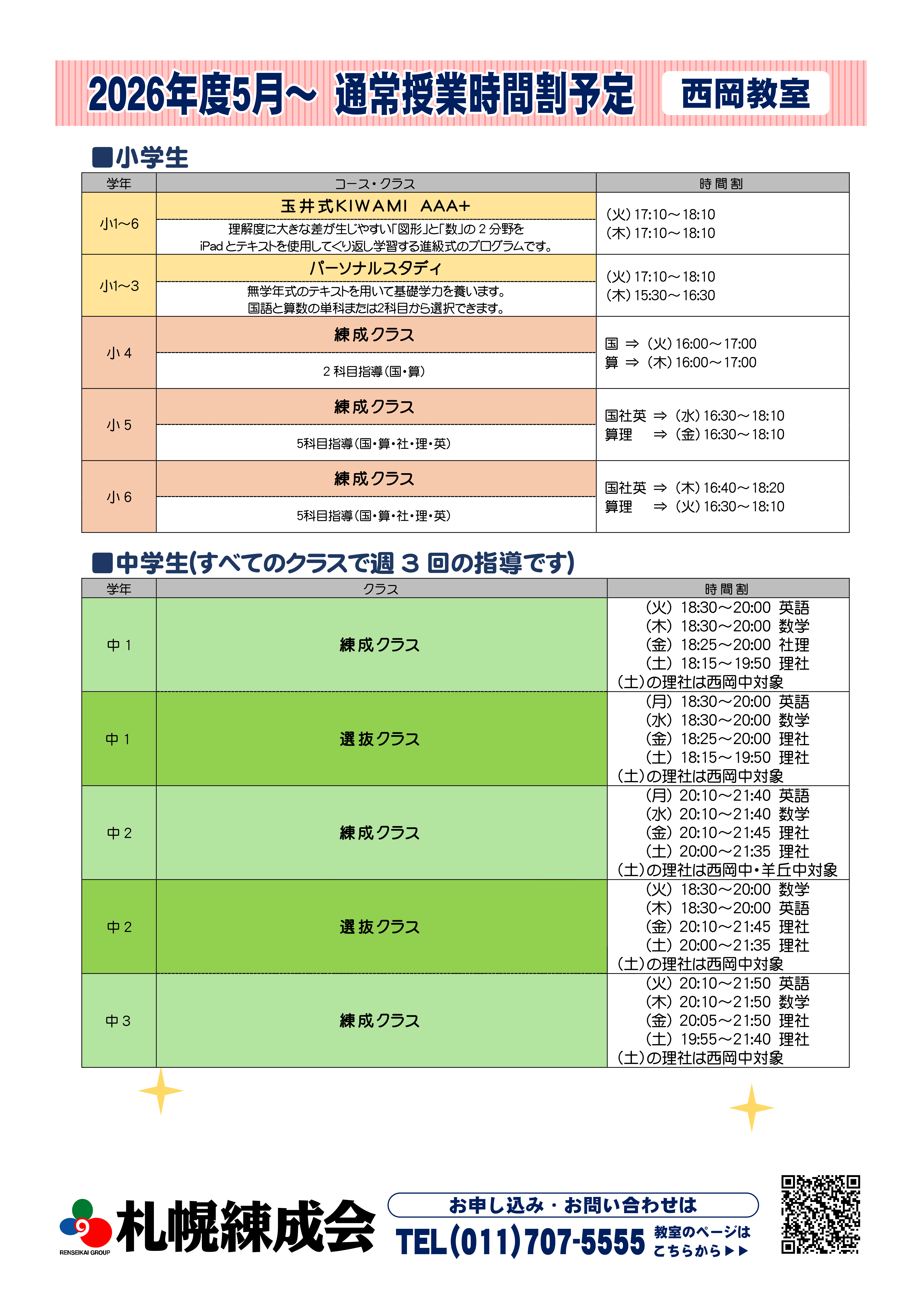 - 2026年度 中1選抜クラス開講!(西岡教室)