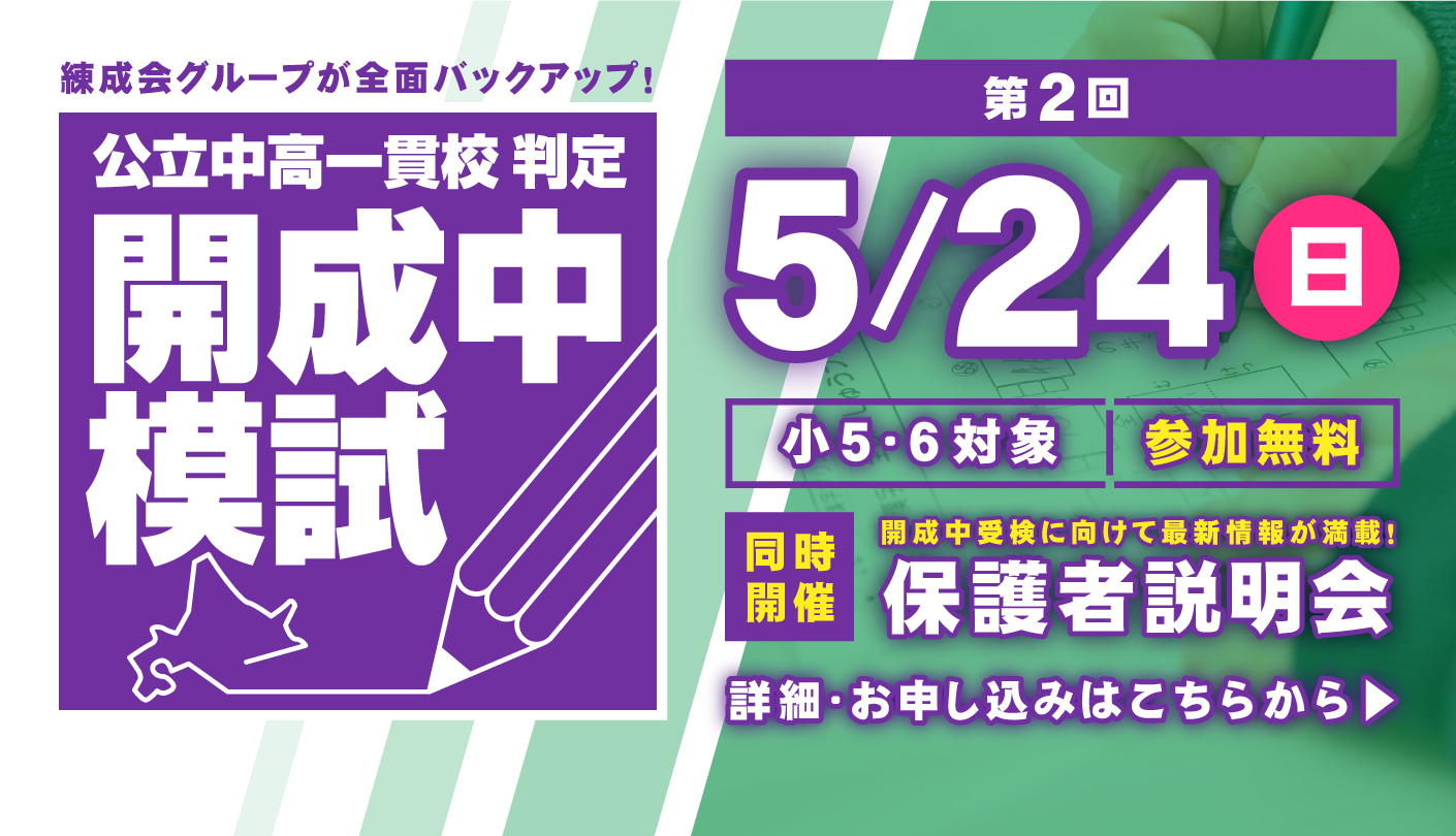- 【小5・6対象】5/24(日)実施 第2回開成中模試のご案内