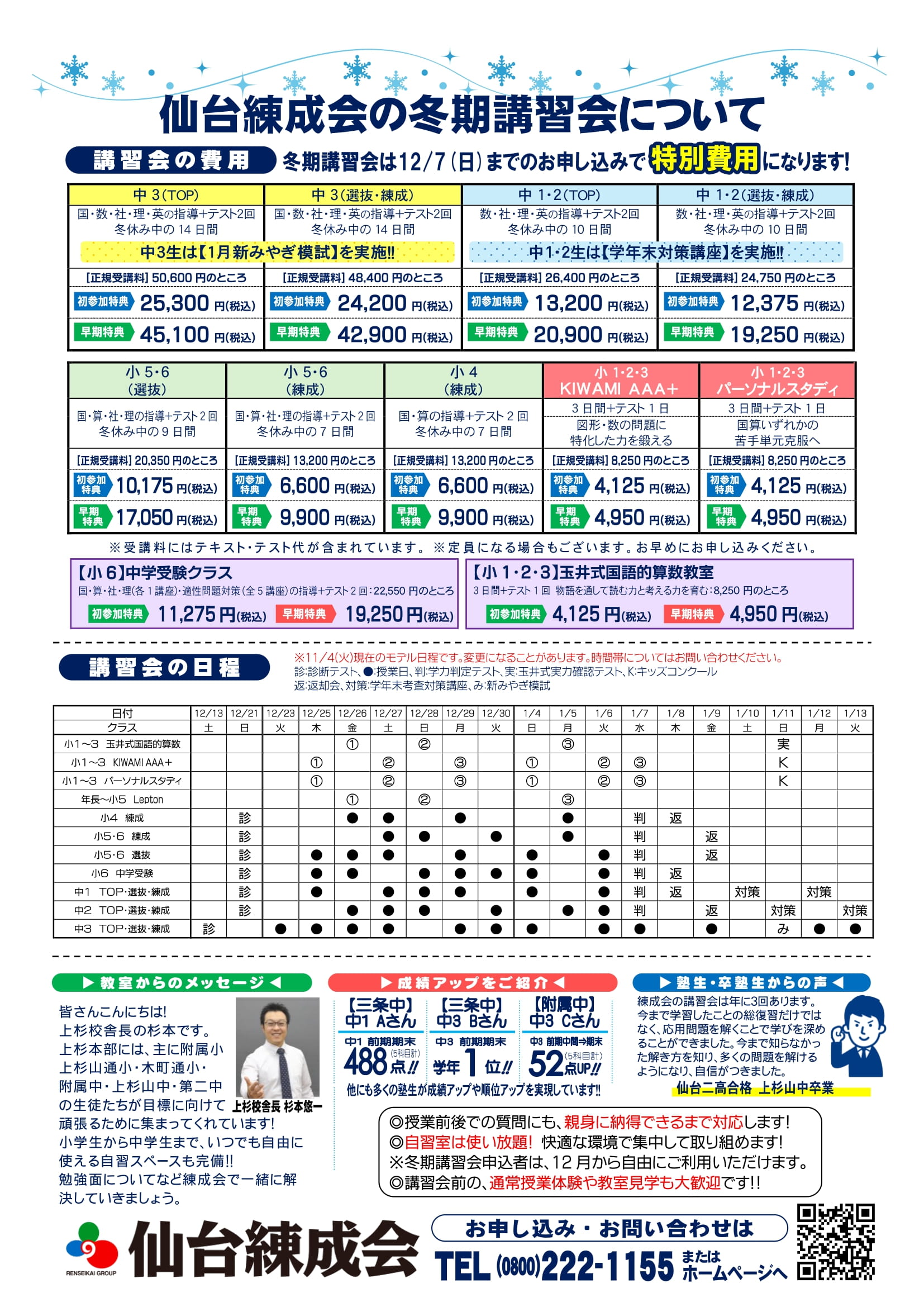 冬の学力アップイベントもご用意しておりますので、是非ご参加ください。