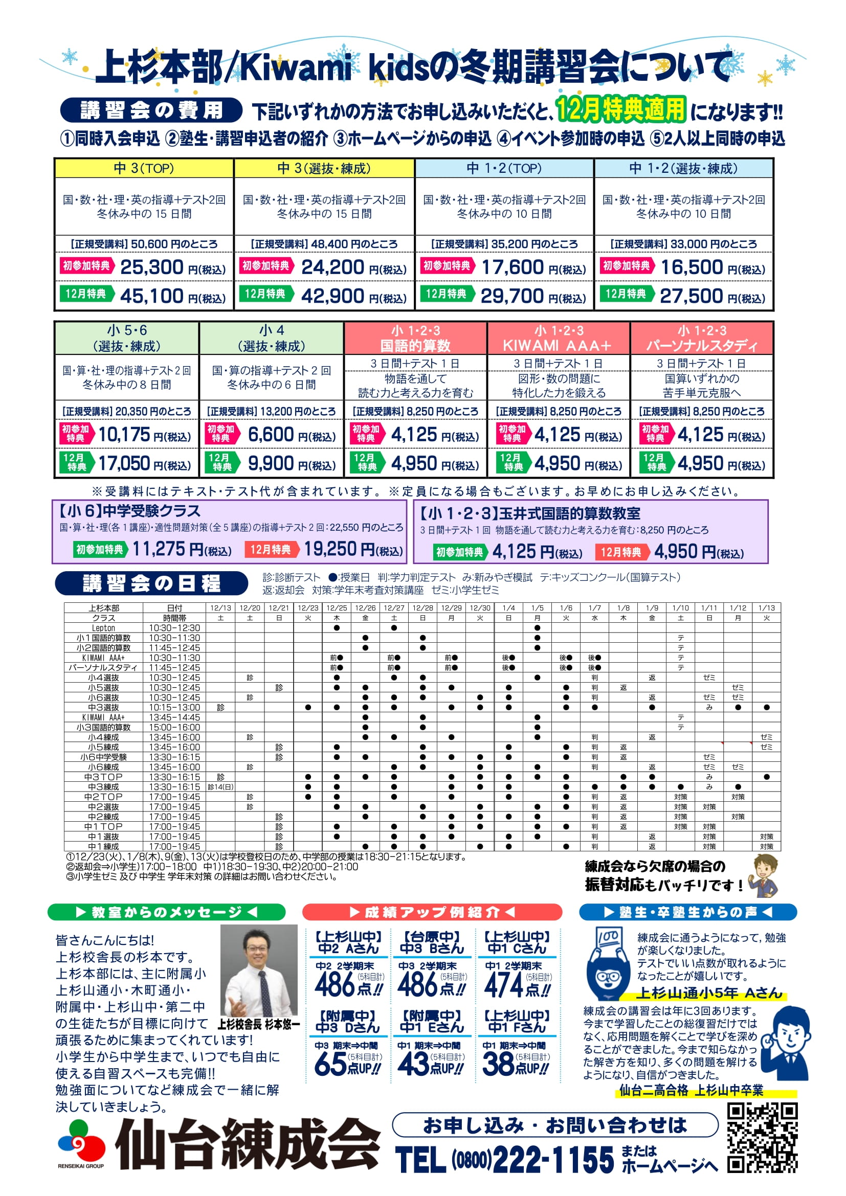 冬期講習会・12月イベントのお知らせ(上杉本部)