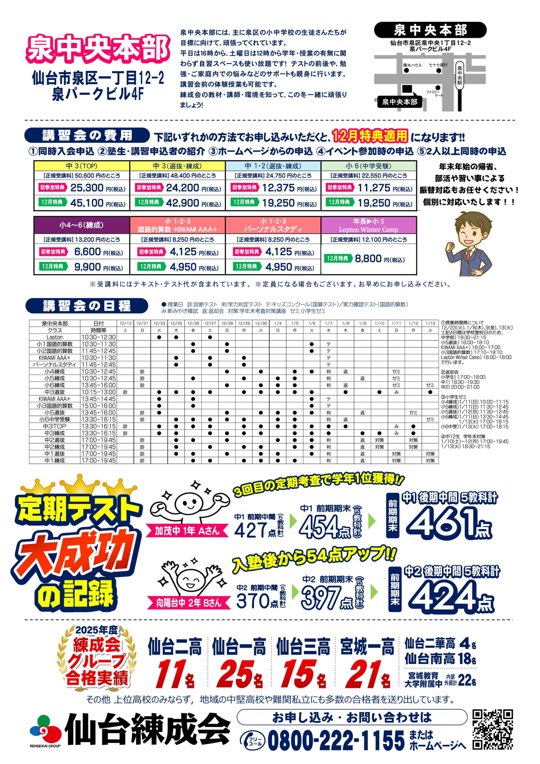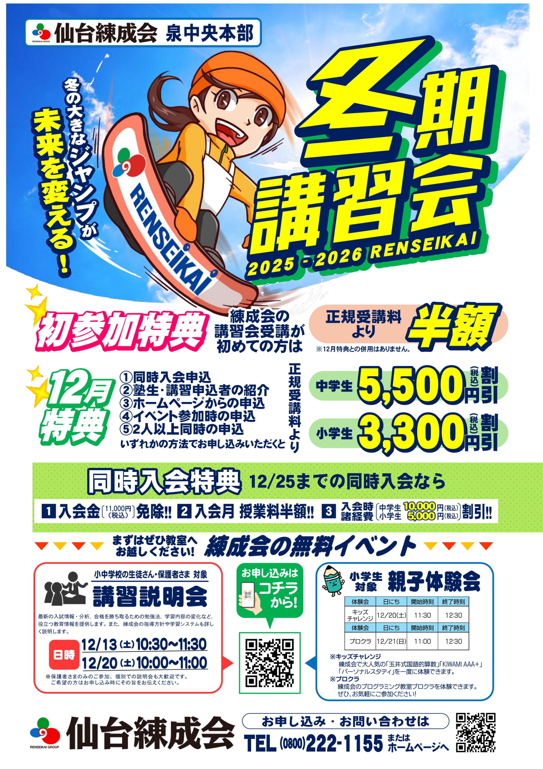 冬期講習会・12月イベントのご案内(泉中央本部)