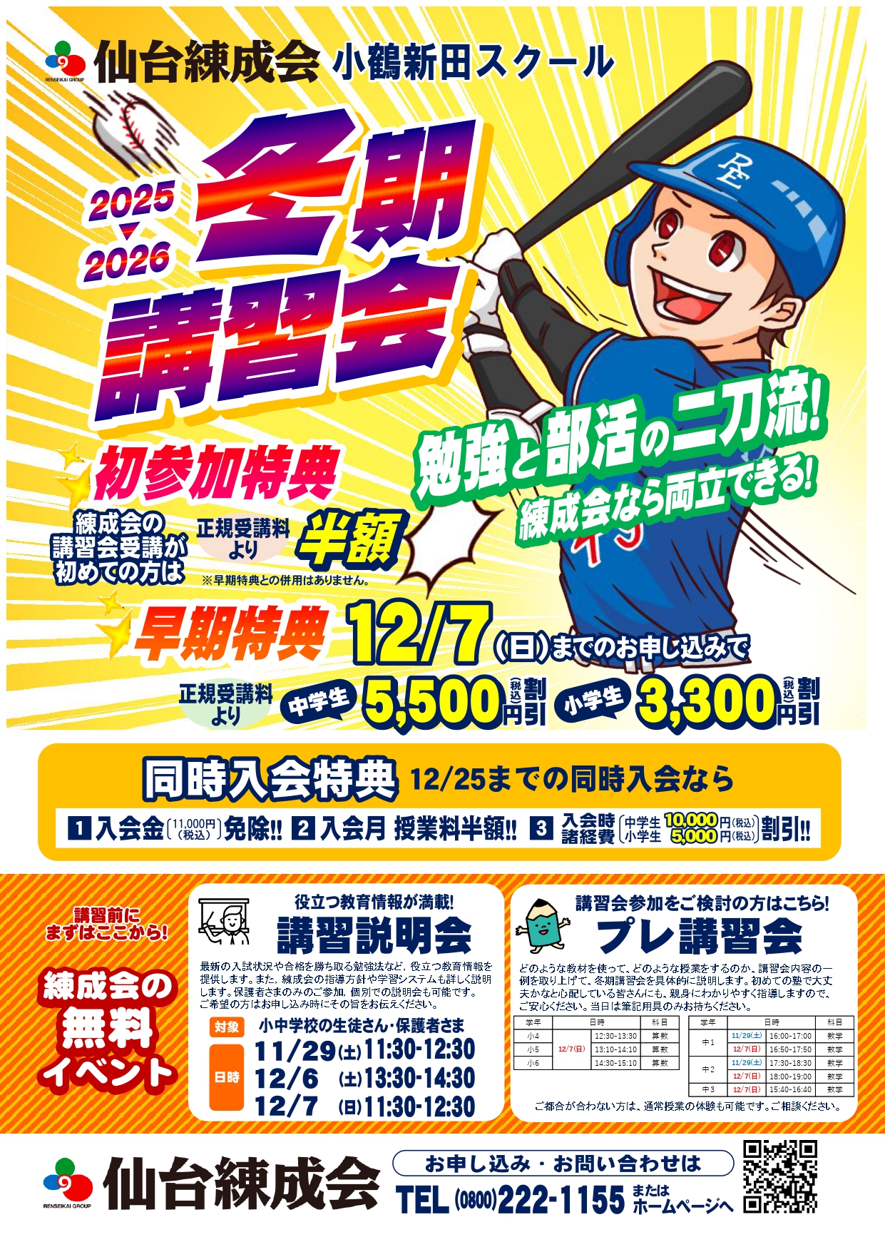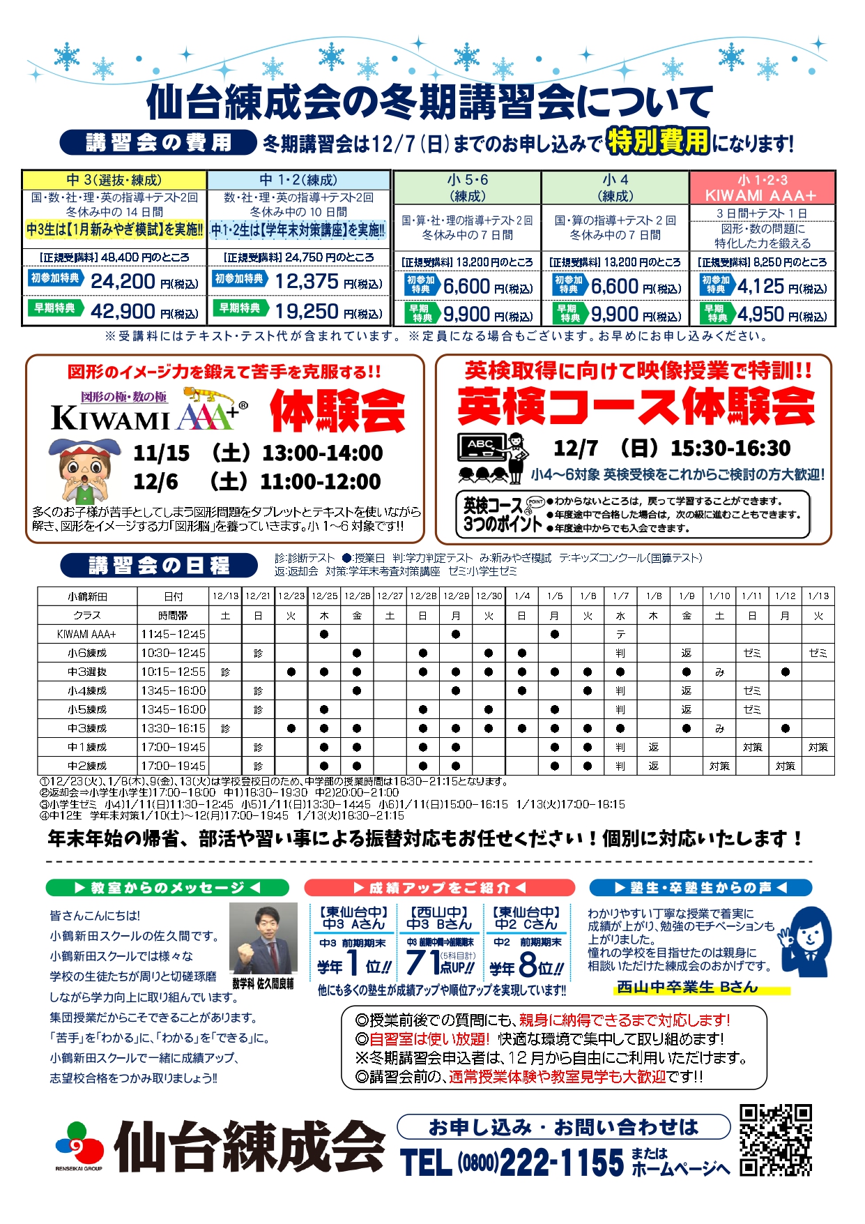 冬期講習会・12月イベントのご案内(小鶴新田スクール)