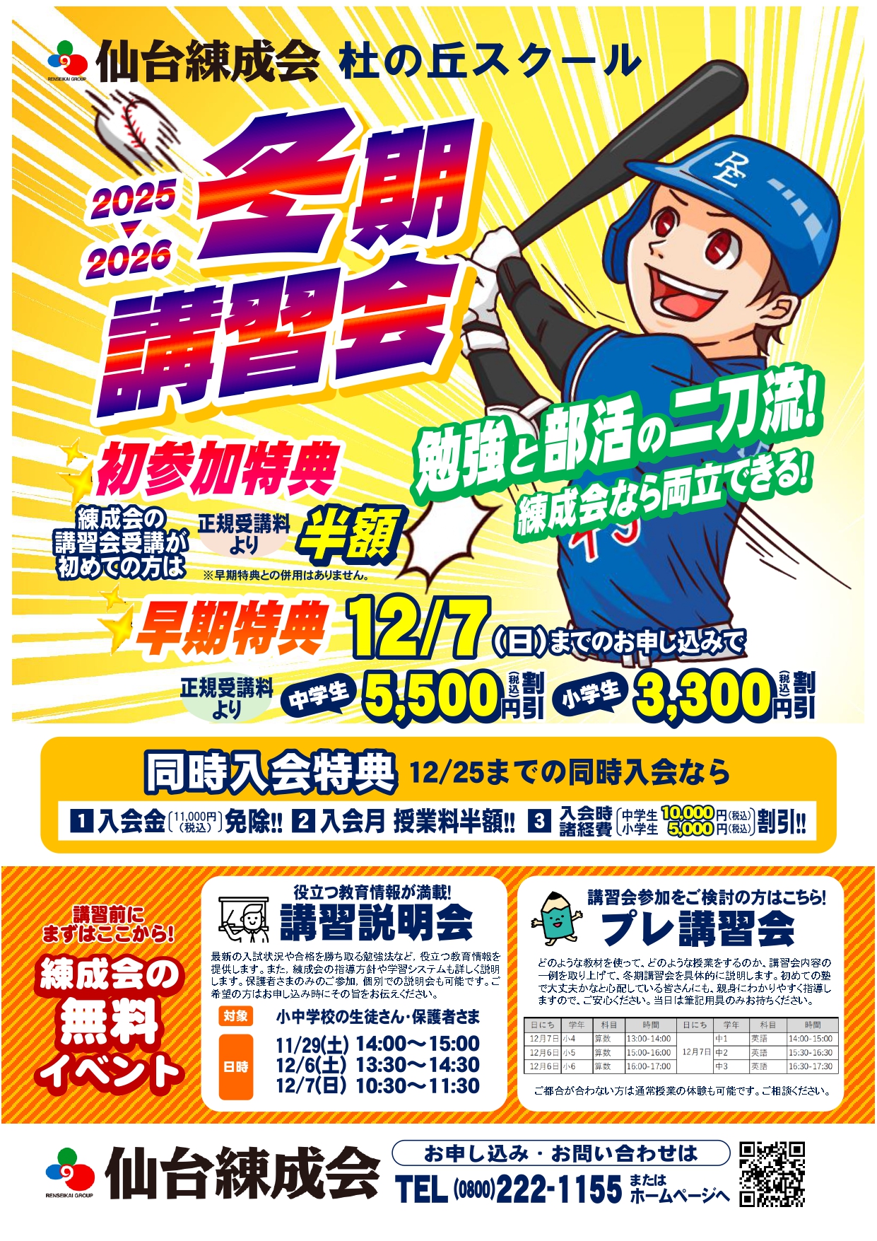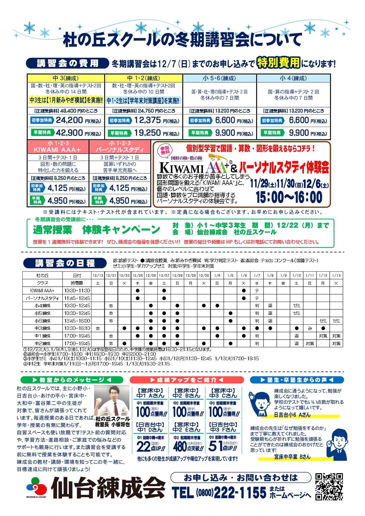 冬期講習会・12月イベントのご案内(杜の丘スクール)