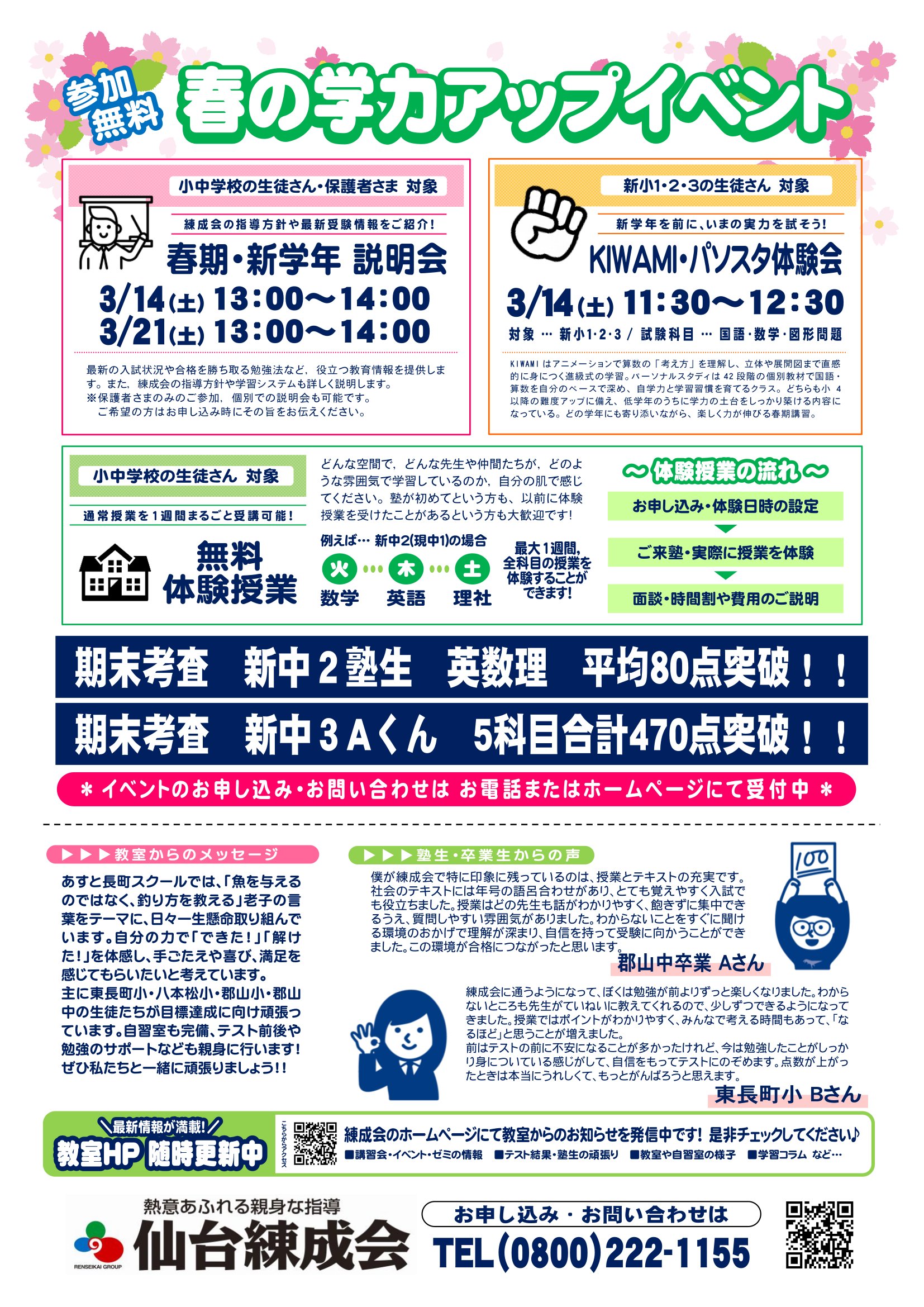 塾選びは未来選び!春期講習会・3月イベント受付中!!(あすと長町スクール)