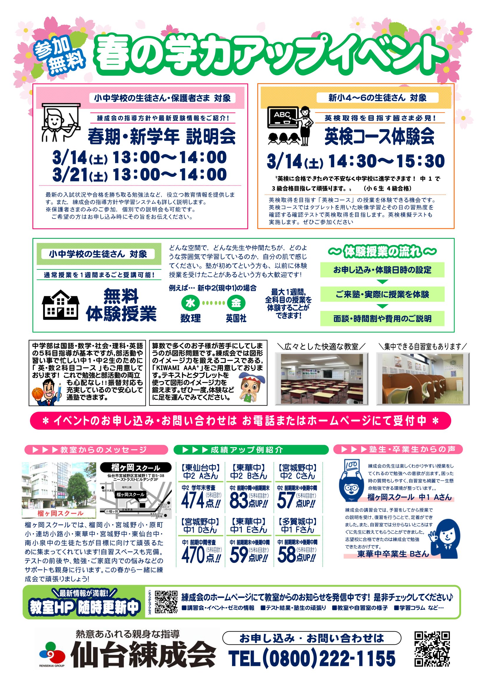 仙台練成会 榴ヶ岡スクールからのお知らせ