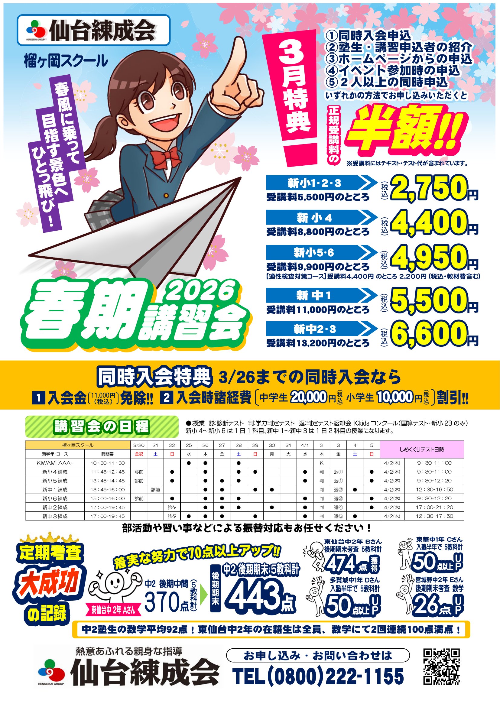 塾選びは未来選び!春期講習会・3月イベント受付中!!(榴ケ岡スクール)