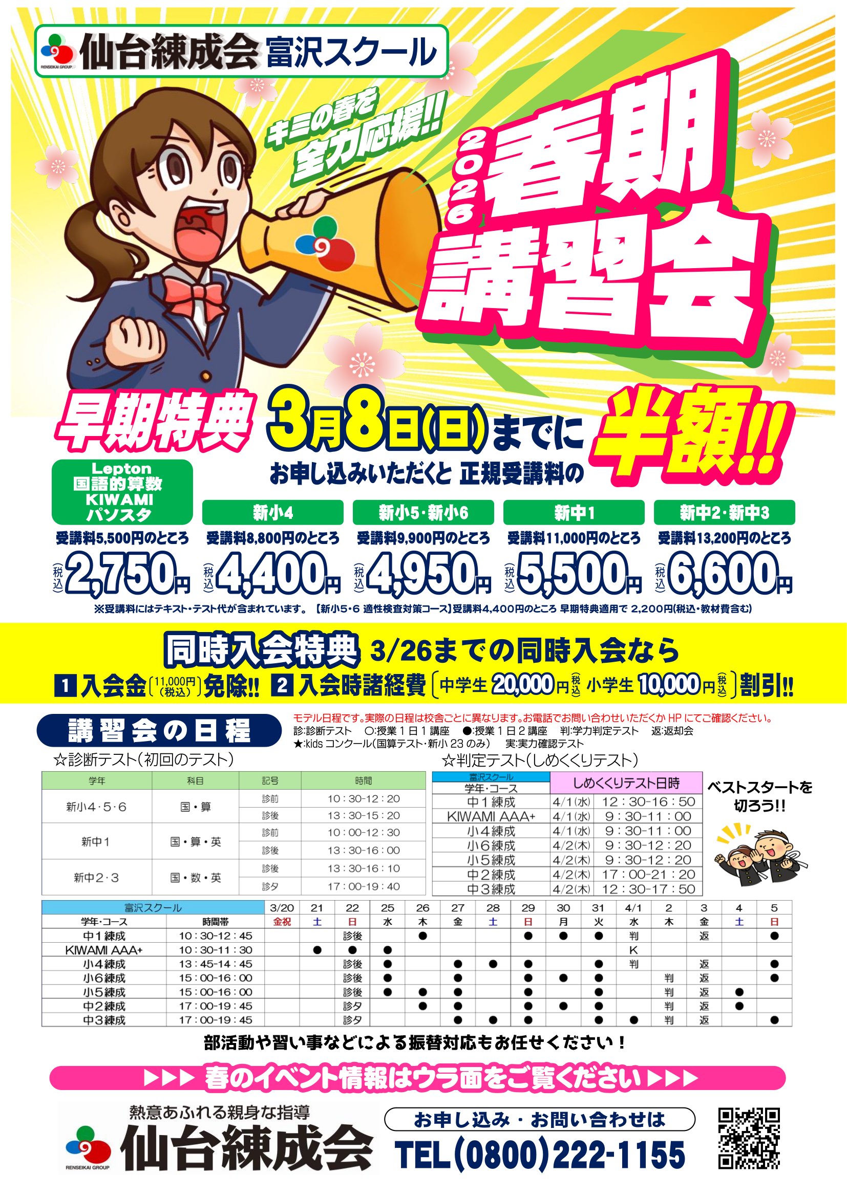 春期講習会の日程確定!2月・3月イベントも受付中!!(富沢スクール)
