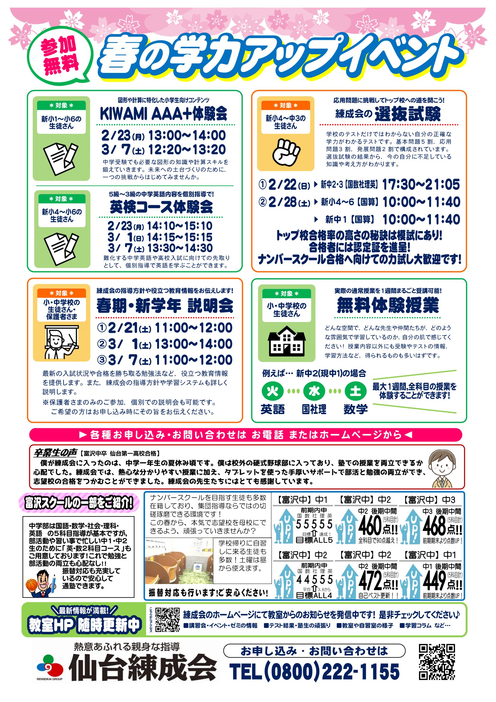仙台練成会 富沢スクールからのお知らせ
