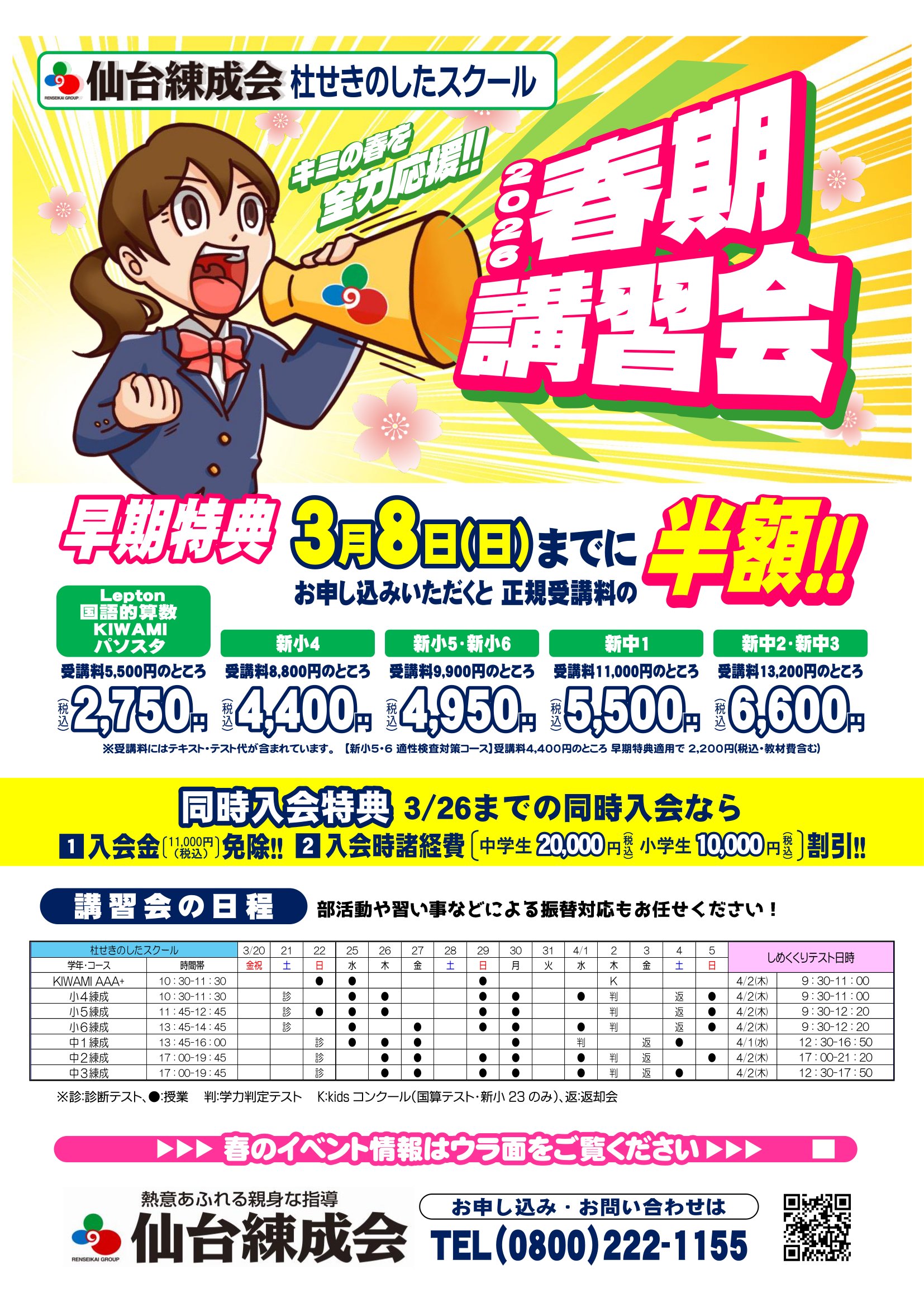 仙台練成会 杜せきのしたスクールからのお知らせ