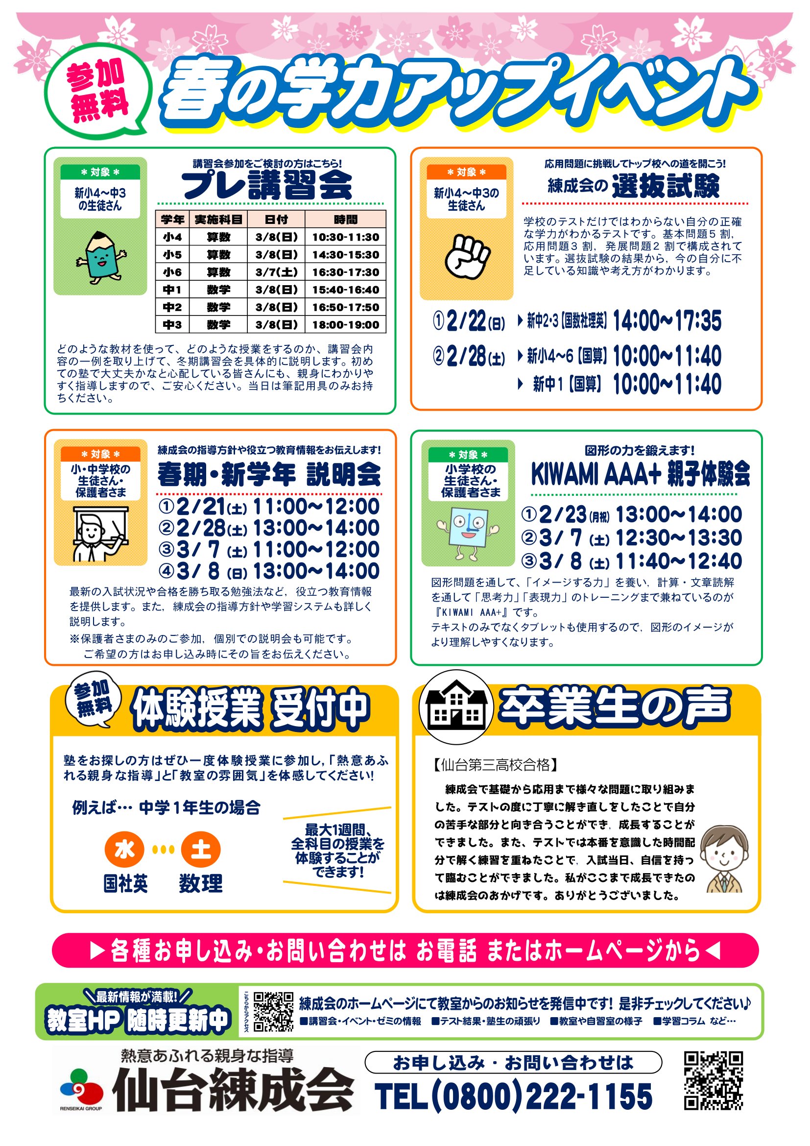 春期講習会・2月イベントのお知らせ(杜せきのしたスクール)