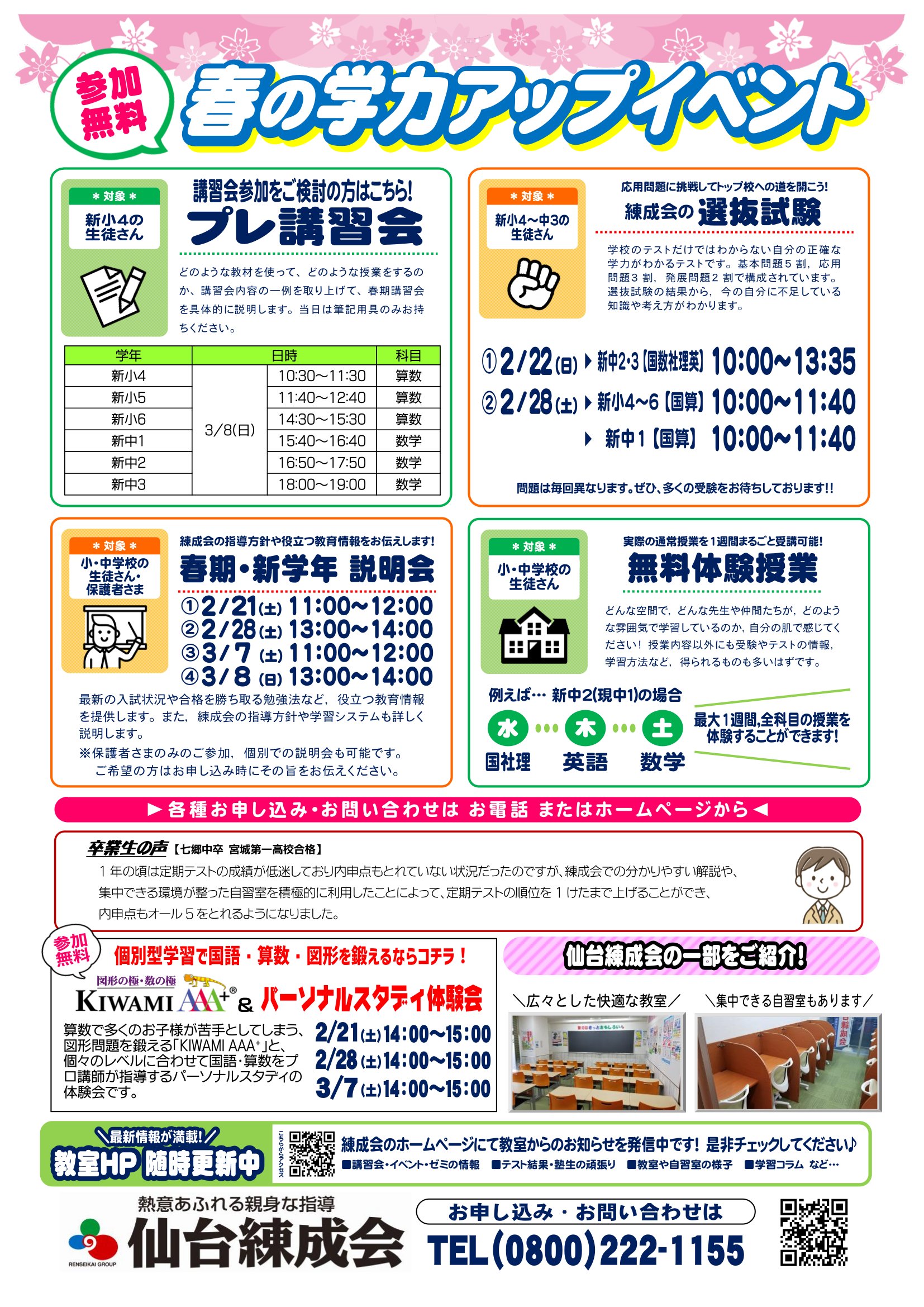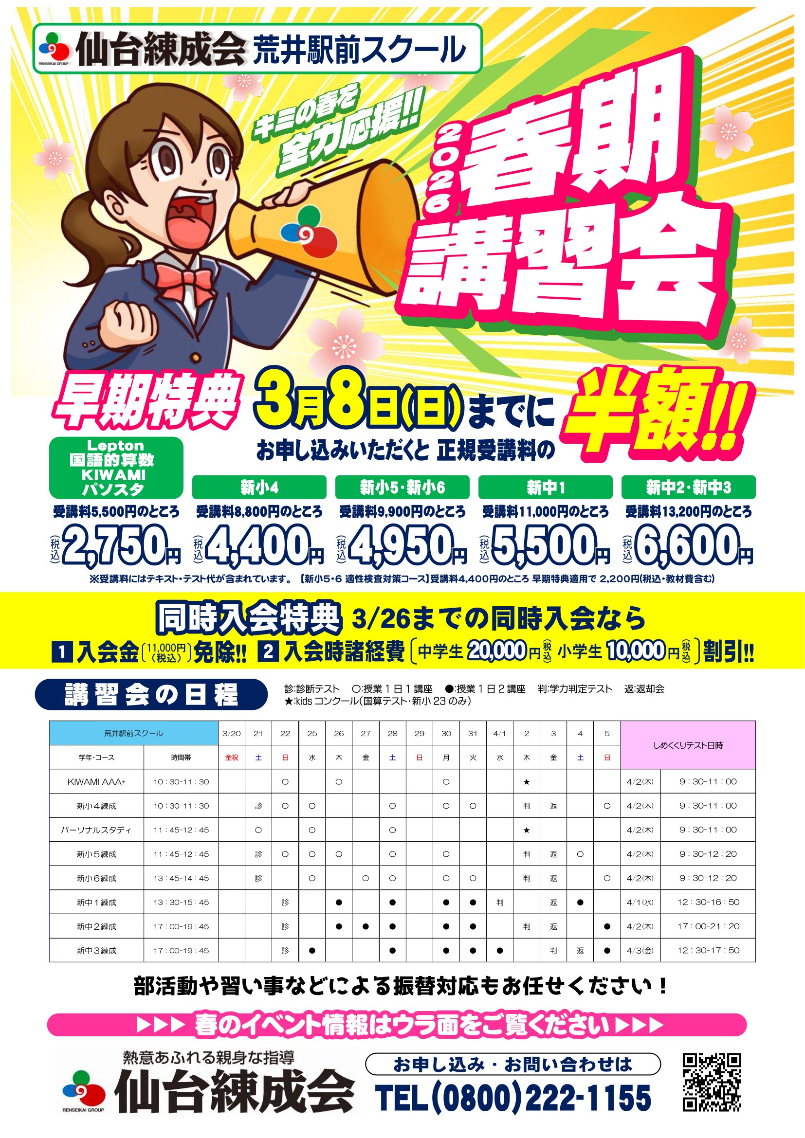 春期講習会の日程確定!2月・3月イベントも受付中!!(荒井駅前スクール)