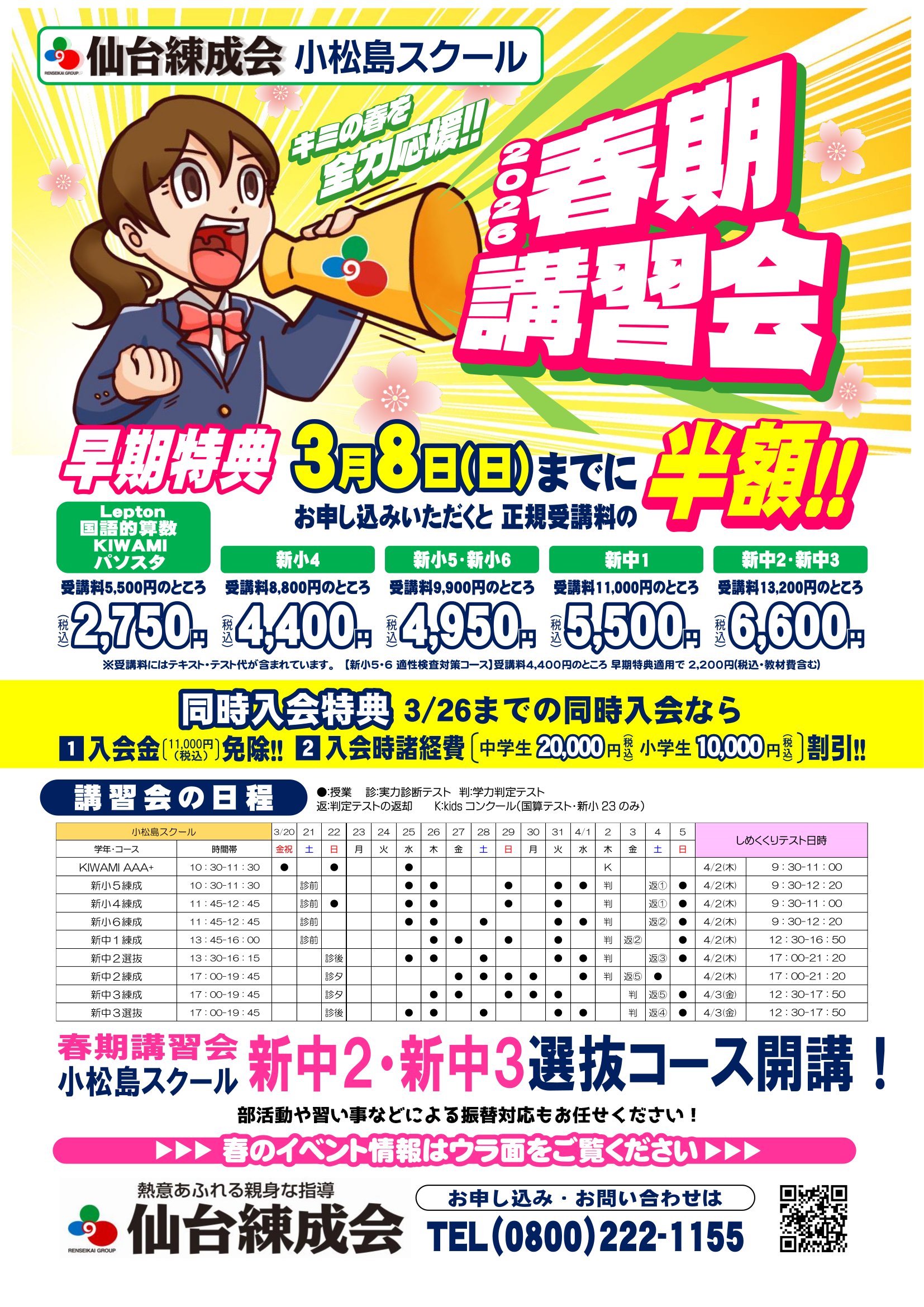 春期講習会の日程確定!2月・3月イベントも受付中!!(小松島スクール)