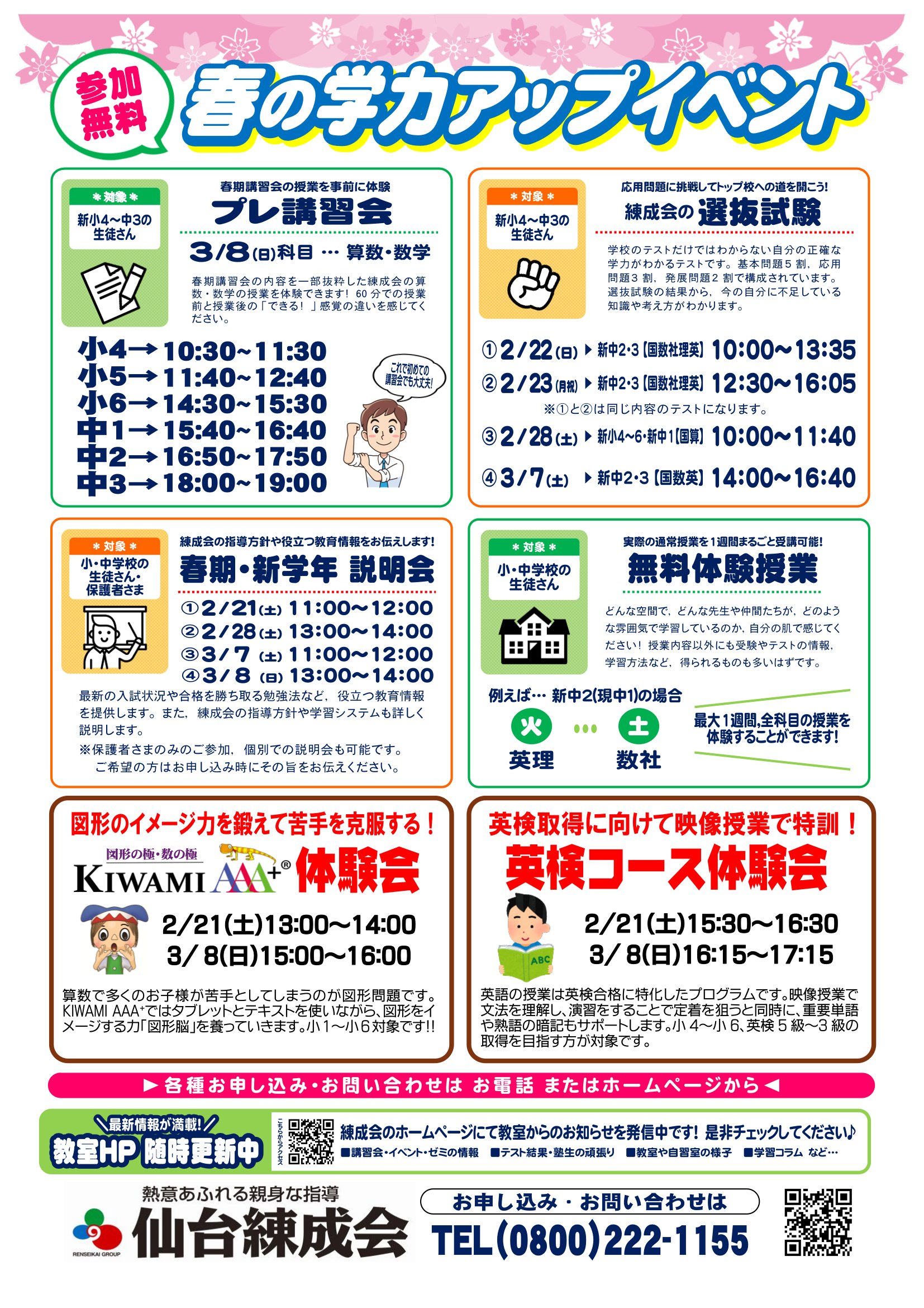 春期講習会・2月イベントのお知らせ(小松島スクール)