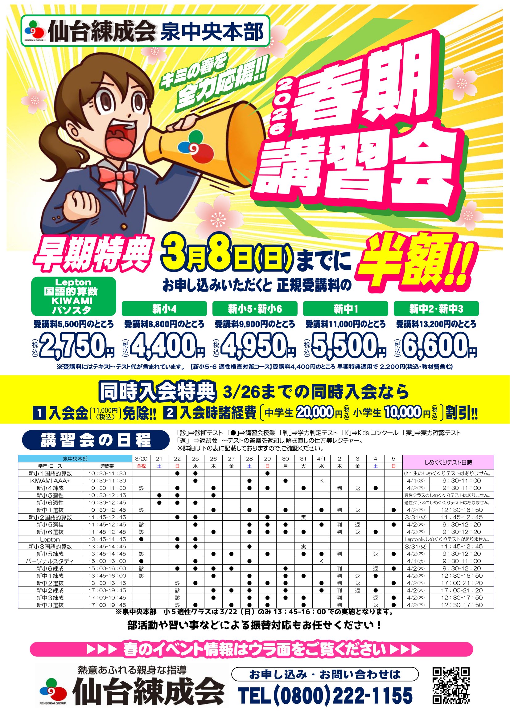 春期講習会の日程確定!2月・3月イベントも受付中!!(泉中央本部)