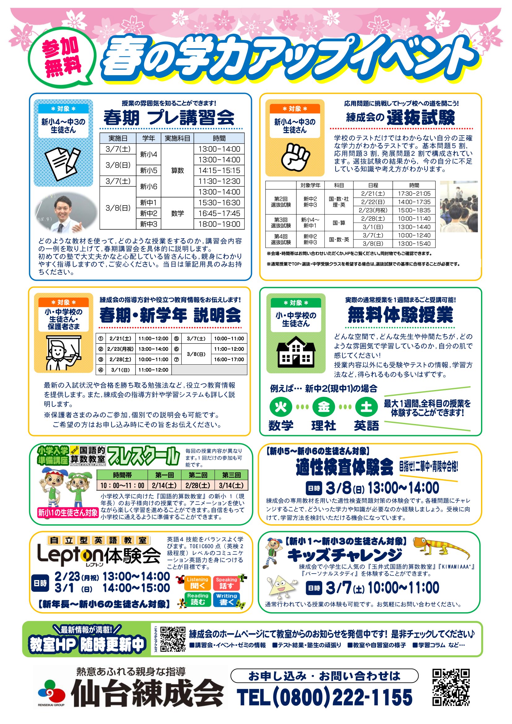 春期講習会・2月イベントのお知らせ(泉中央本部)