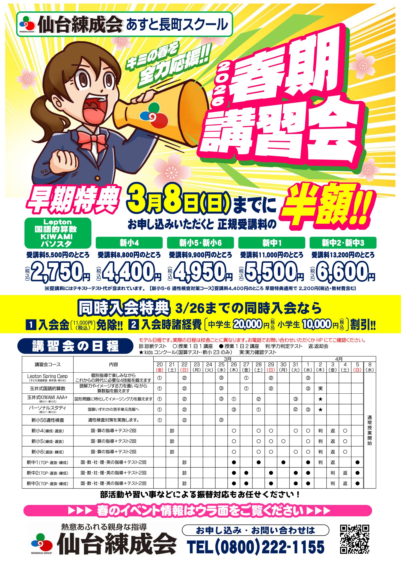 練成会では、2026年春期講習会の受付を開始しております。