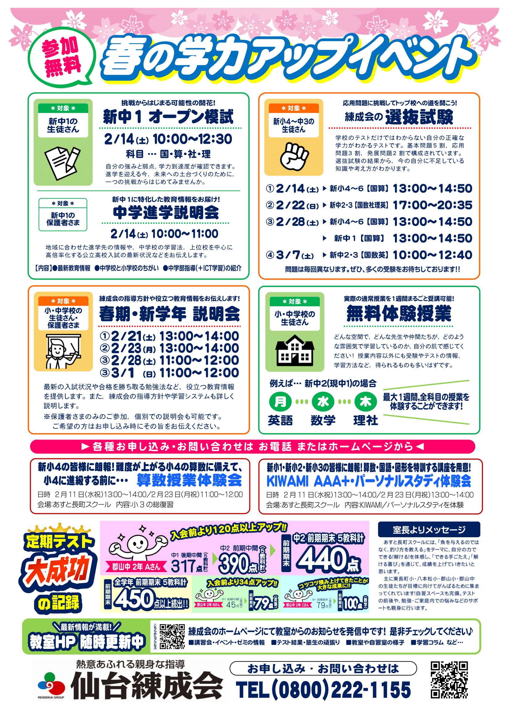 仙台練成会 あすと長町スクールからのお知らせ