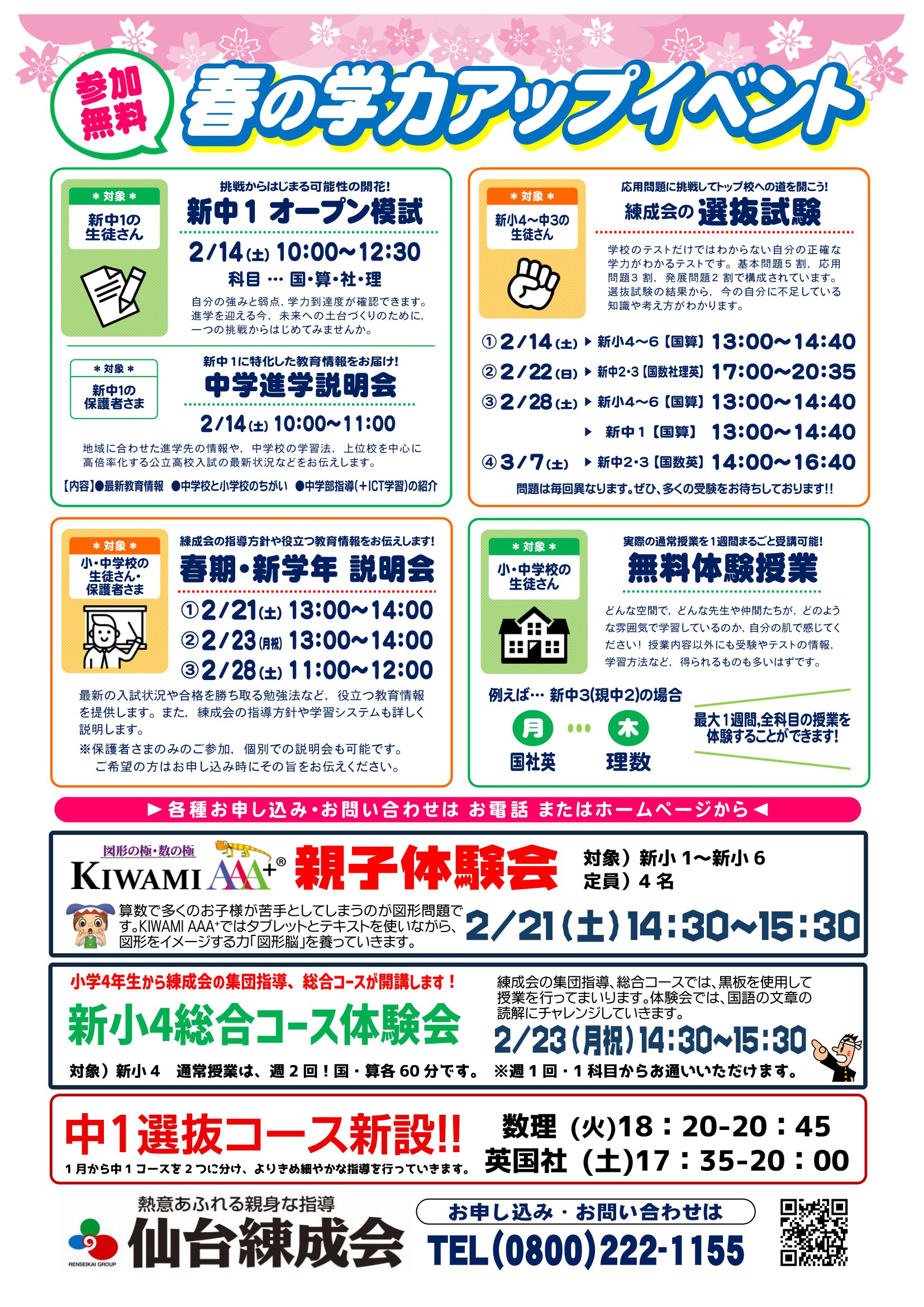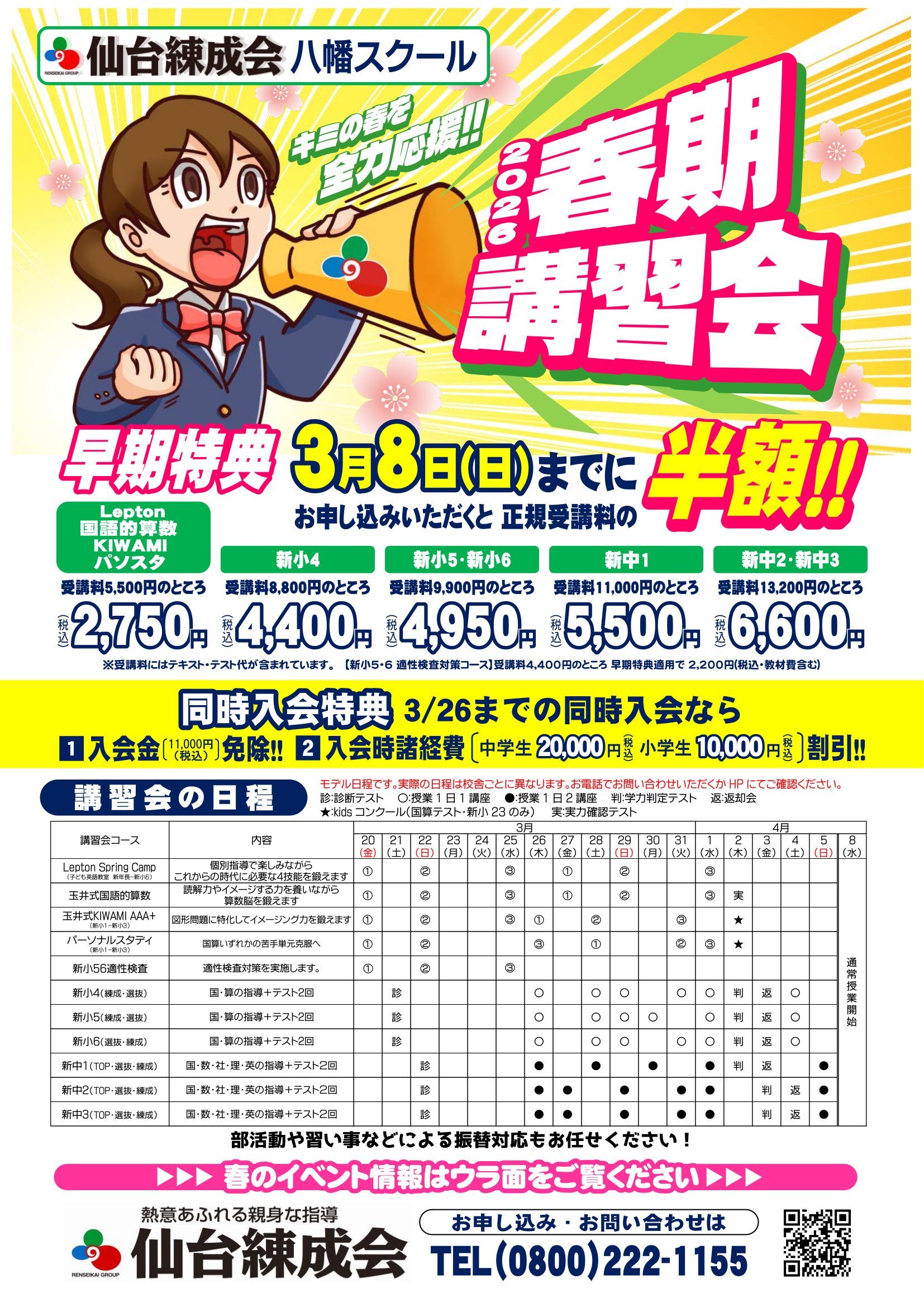 春期講習会・2月イベントのお知らせ(八幡スクール)