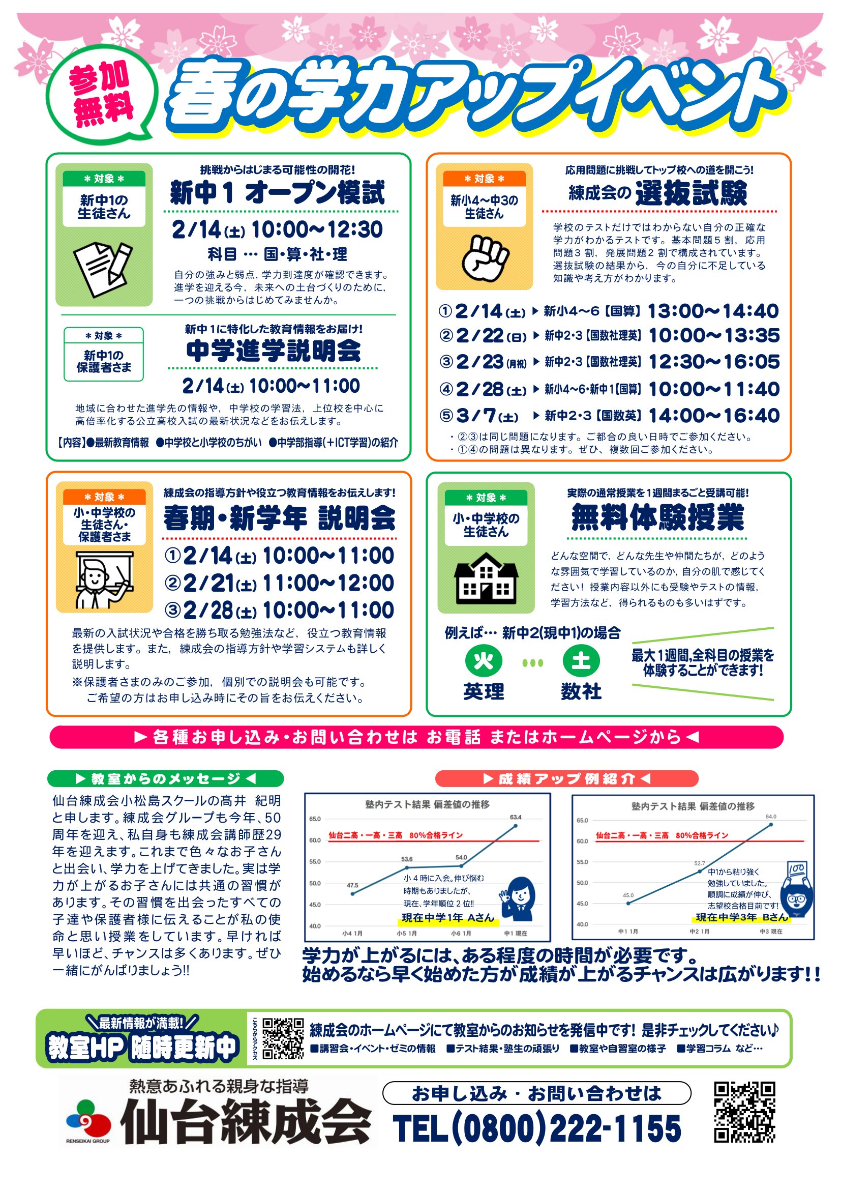 仙台練成会 小松島スクールからのお知らせ