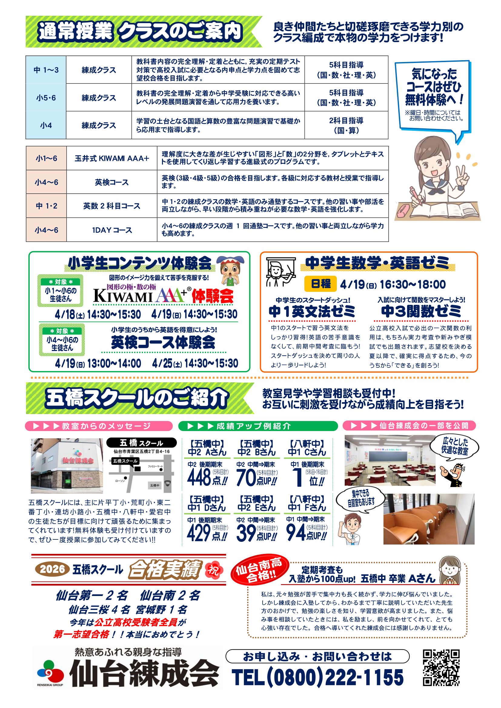 仙台練成会 五橋スクールからのお知らせ