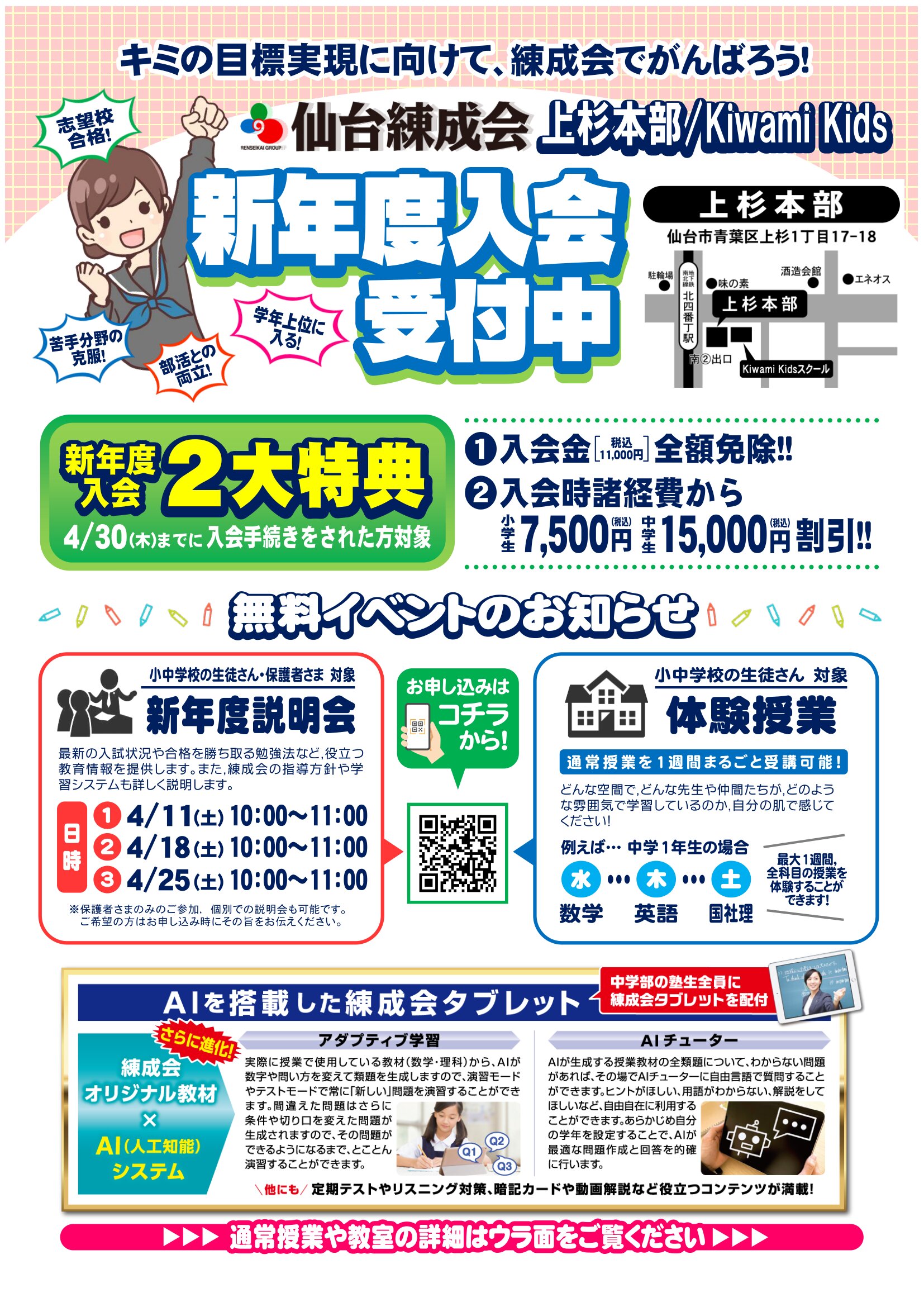 飛躍の一年へ!新年度入会・4月無料イベントのご案内(上杉本部)