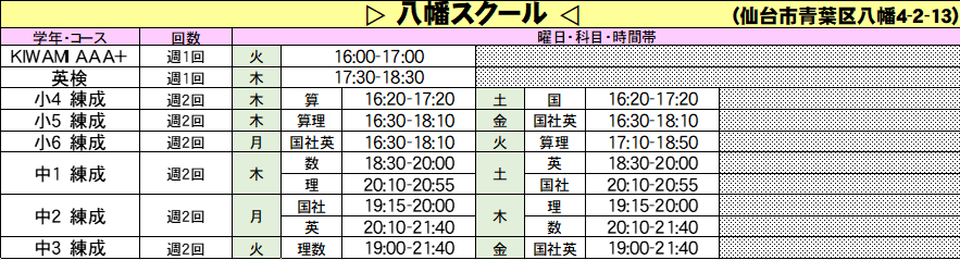 仙台練成会 八幡スクールからのお知らせ