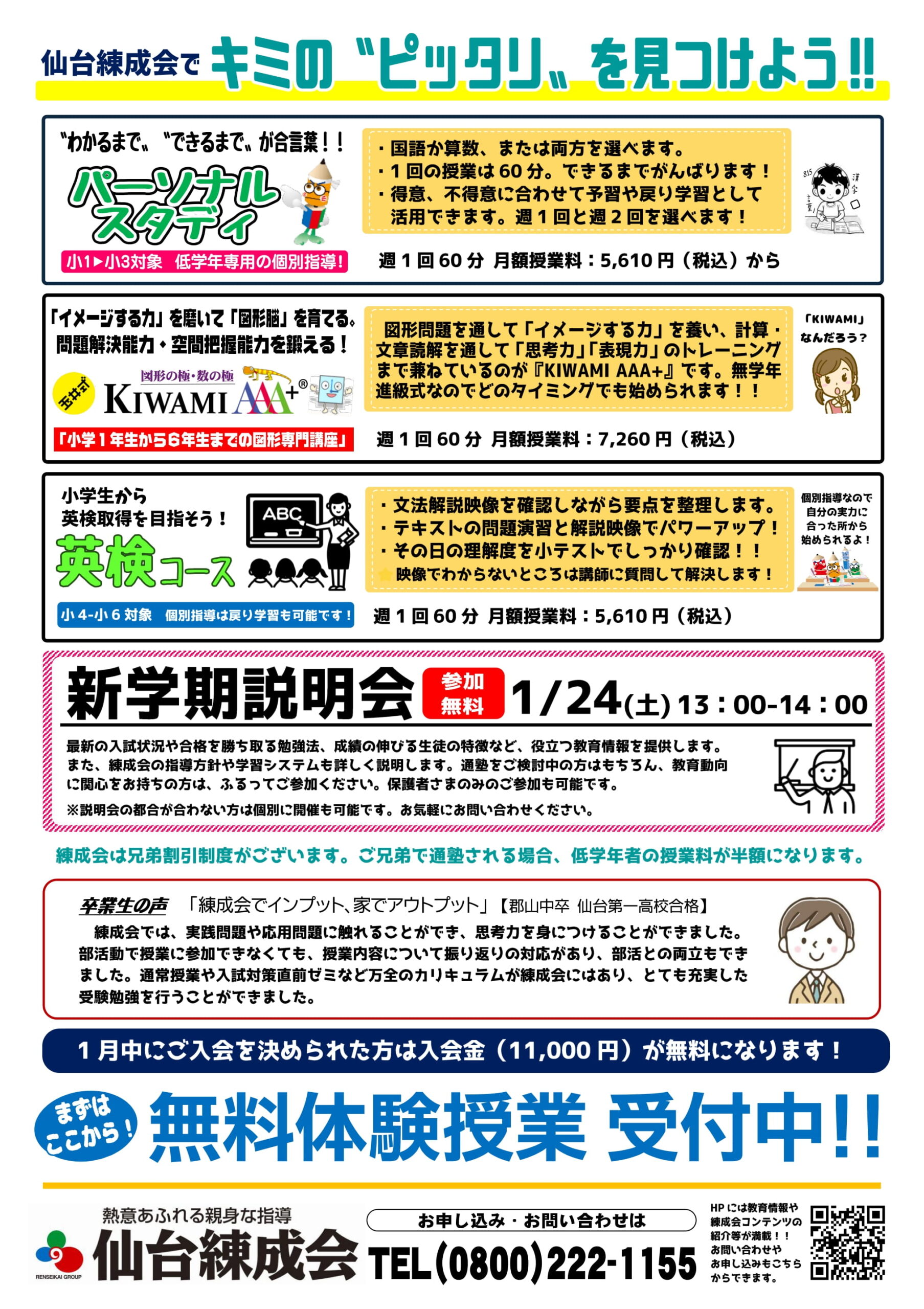 仙台練成会 あすと長町スクールからのお知らせ