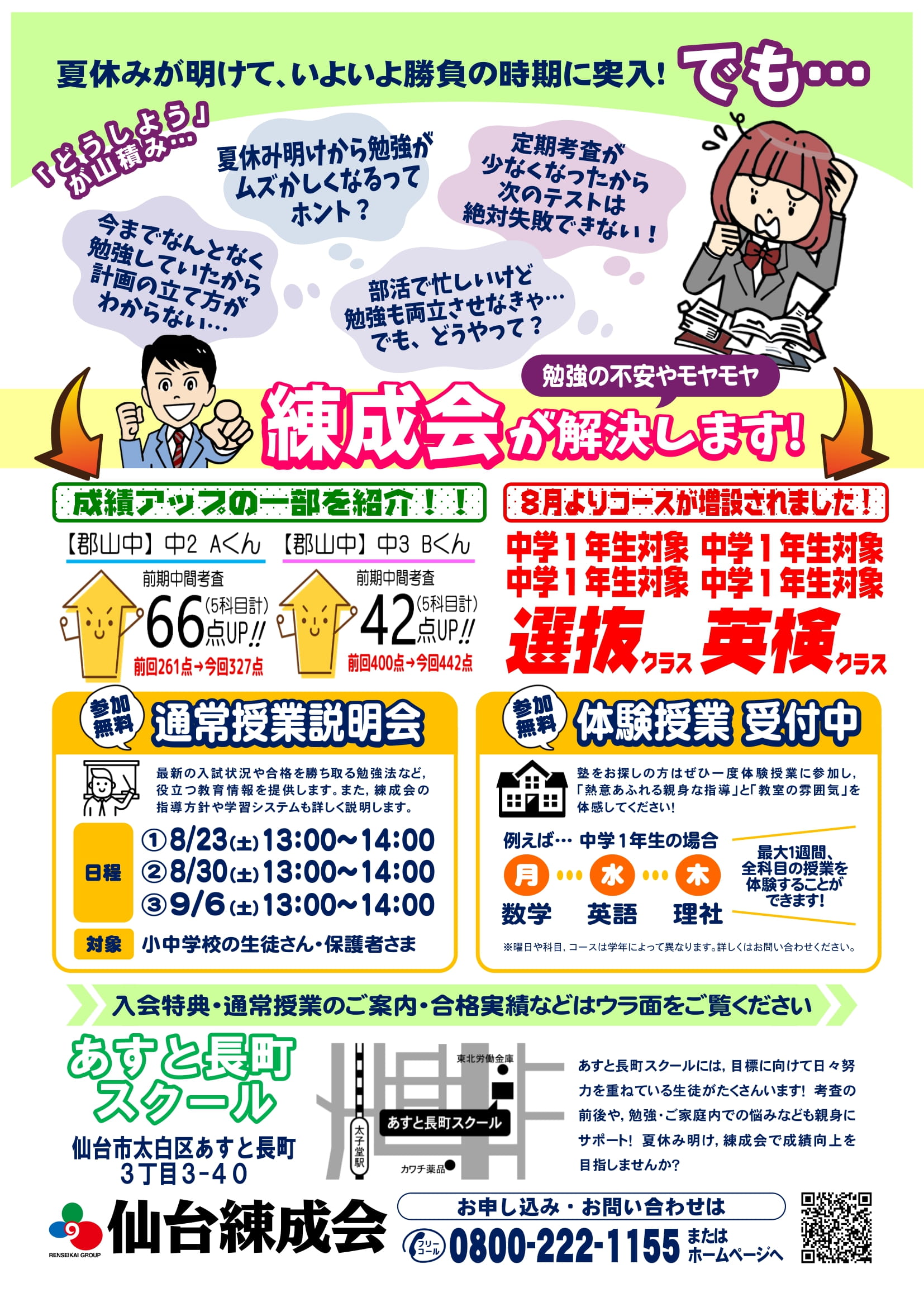 夏期講習会・7月無料イベント受付中!!(あすと長町スクール)