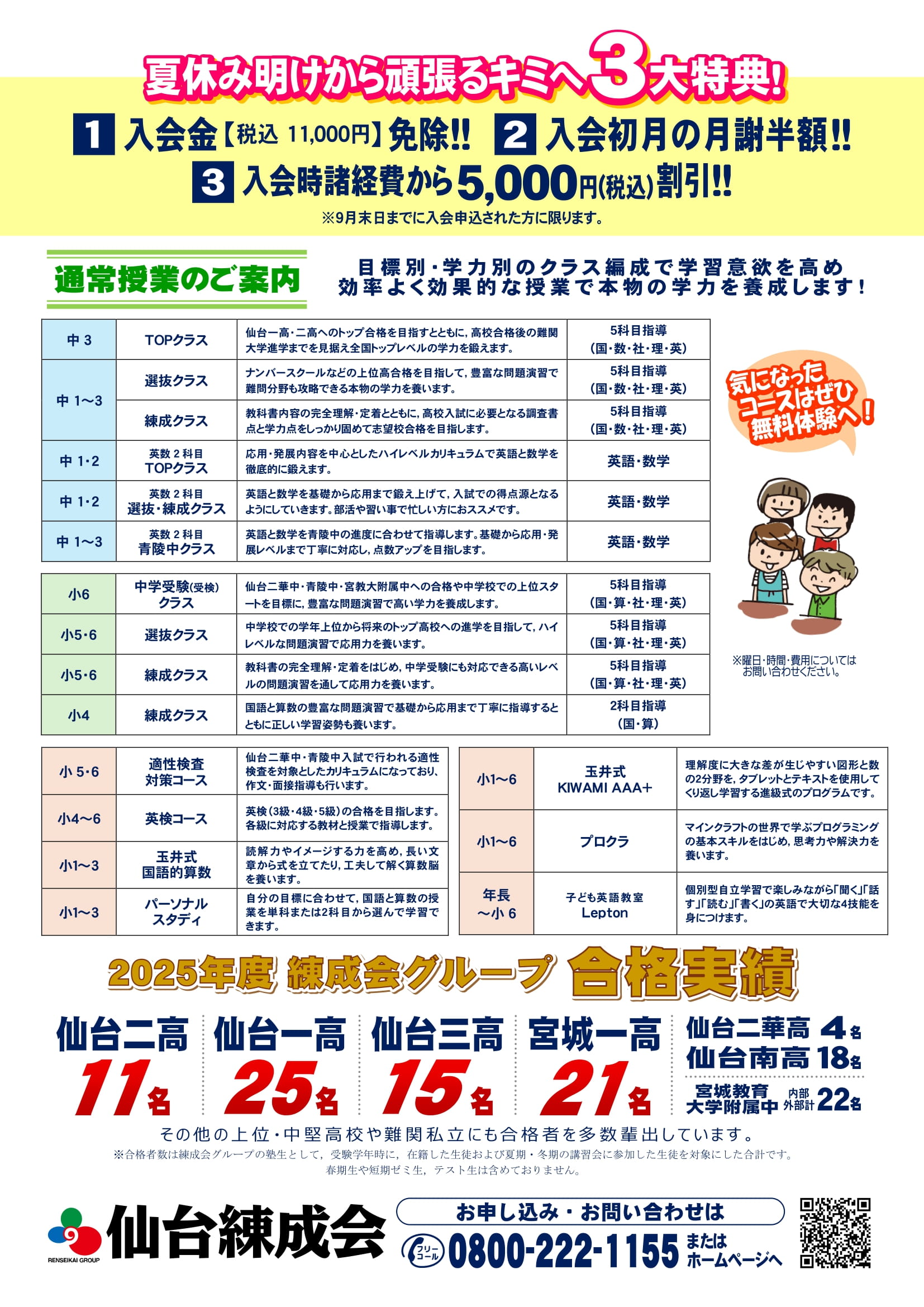 9月入会・無料イベント受付中!!(あすと長町スクール)