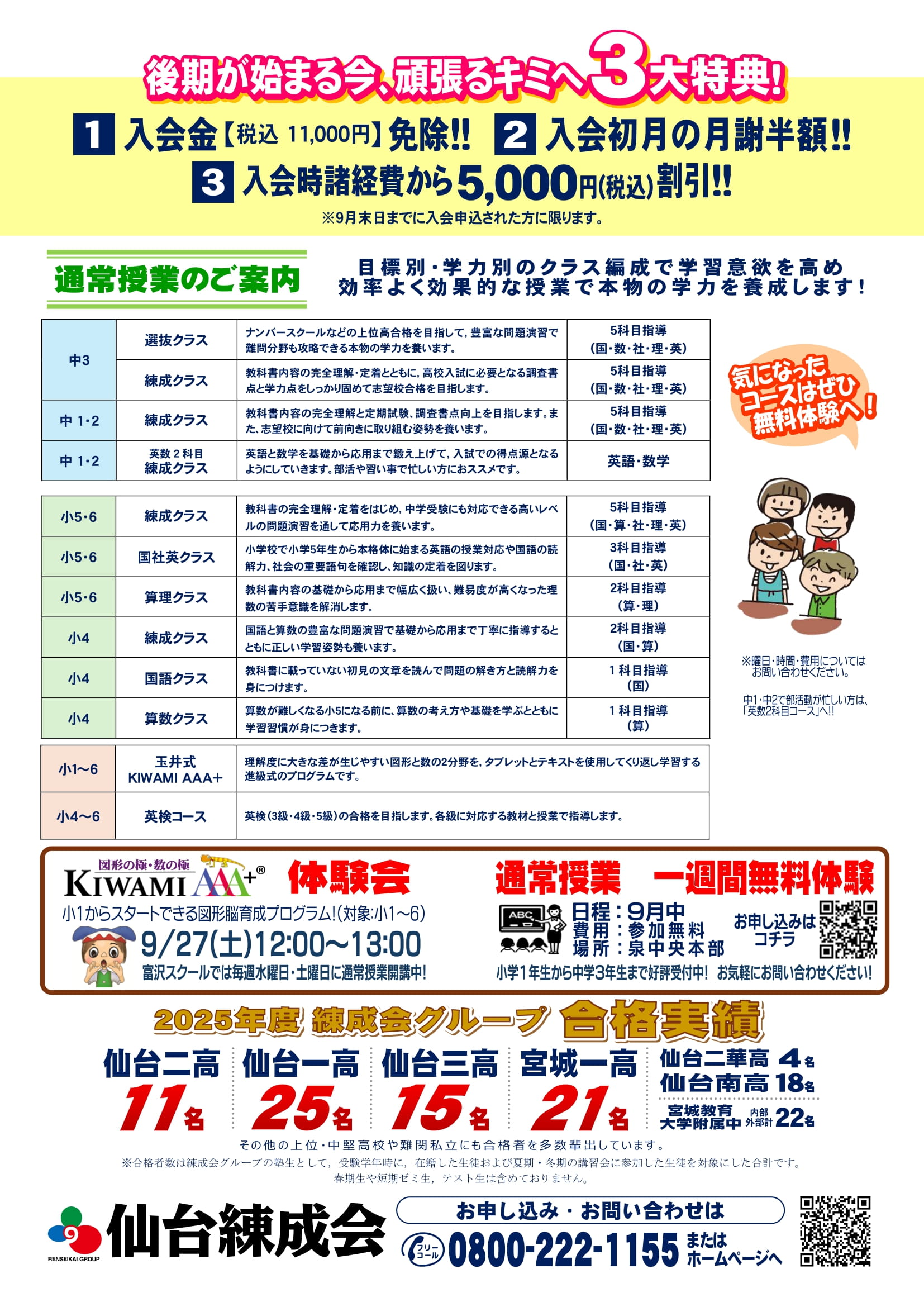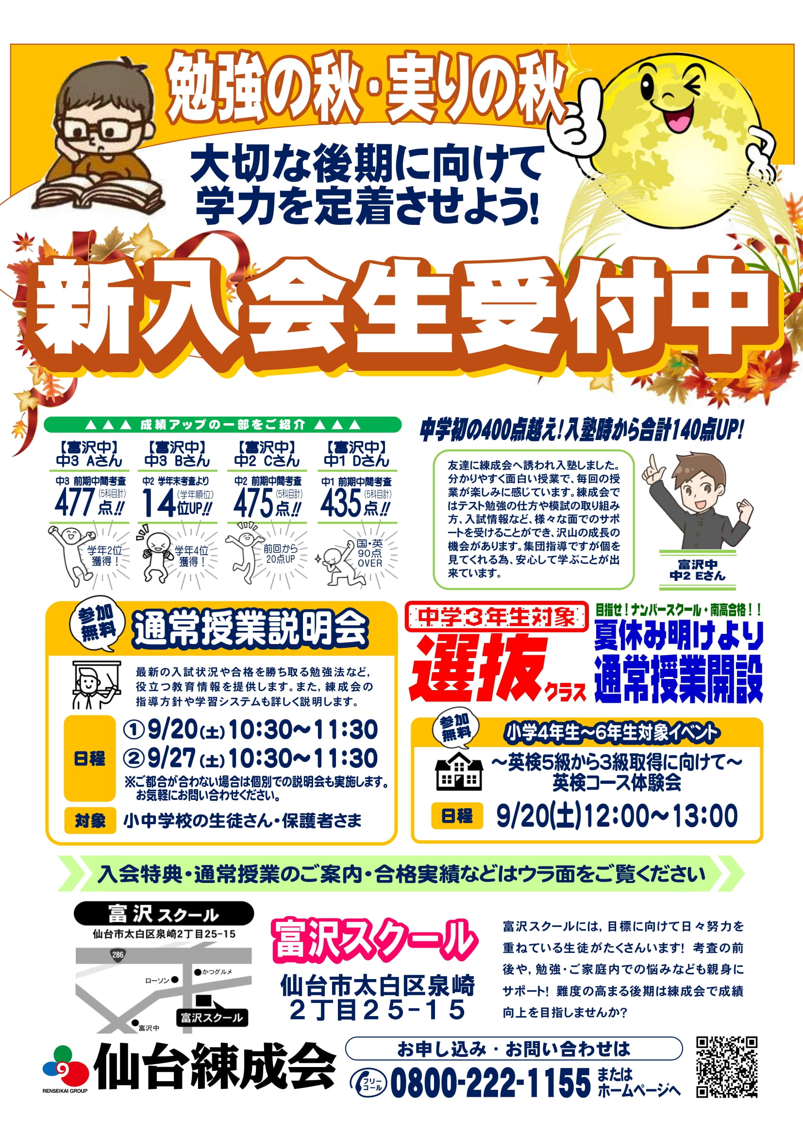 前期期末考査公開対策・中3選抜コース開講(富沢スクール)