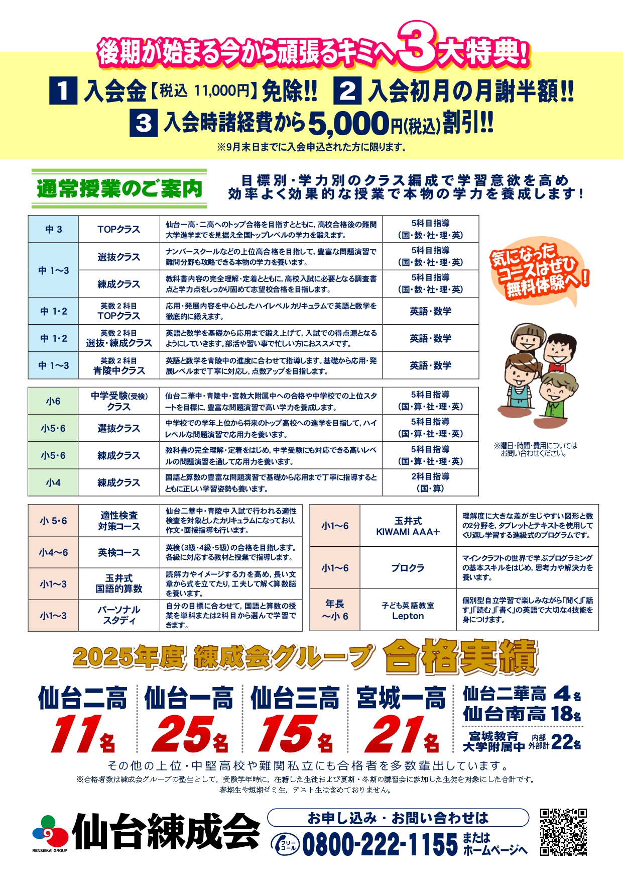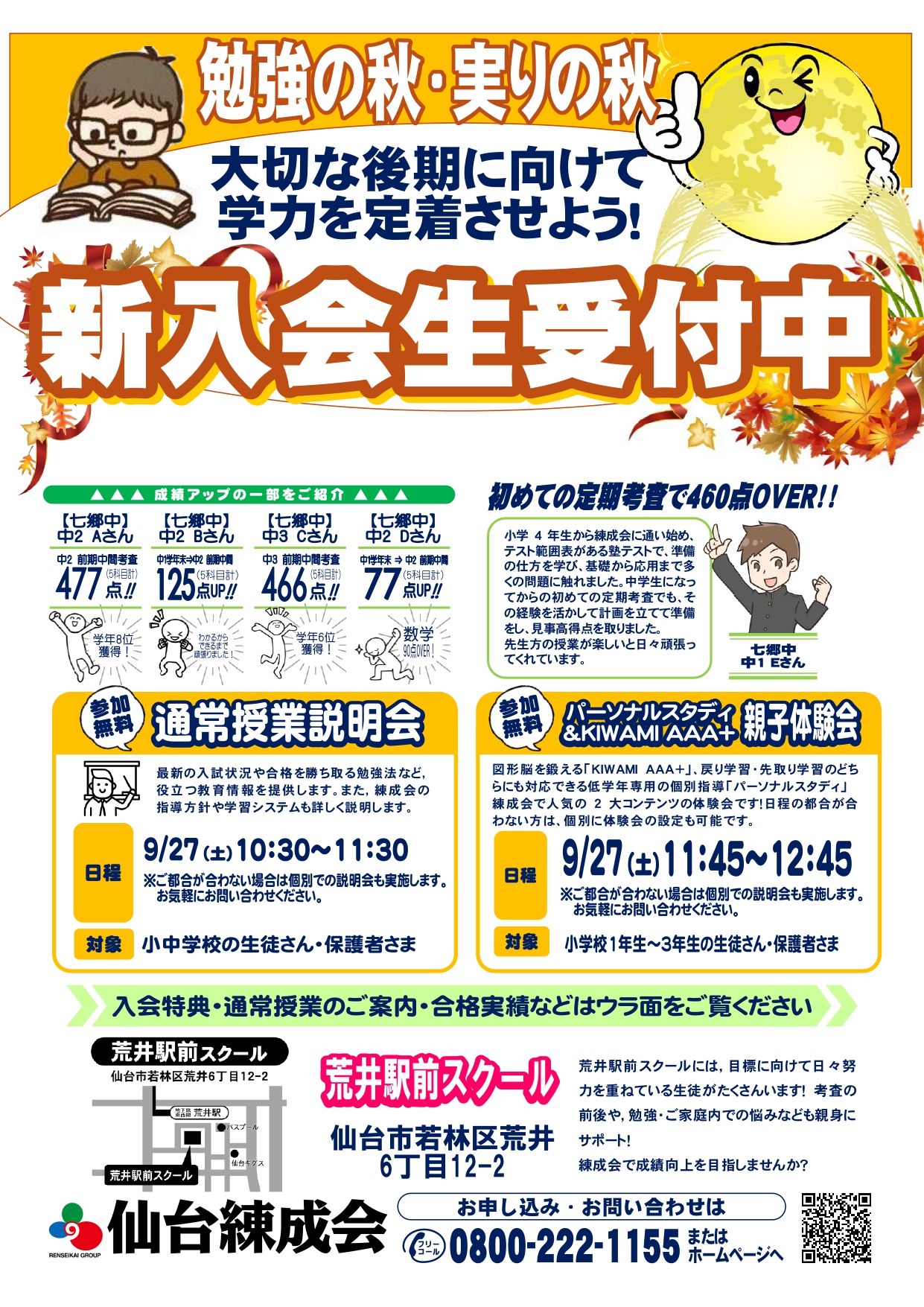 9月入会・無料イベント受付中!!(荒井駅前スクール)