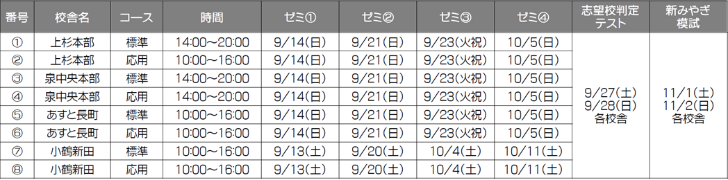 ┗ 4日間×[国・社・理×各50分+数・英×各80分]+志望校判定テスト+新みやぎ模試