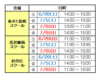 【対象】小1~3 【会場・実施日時】