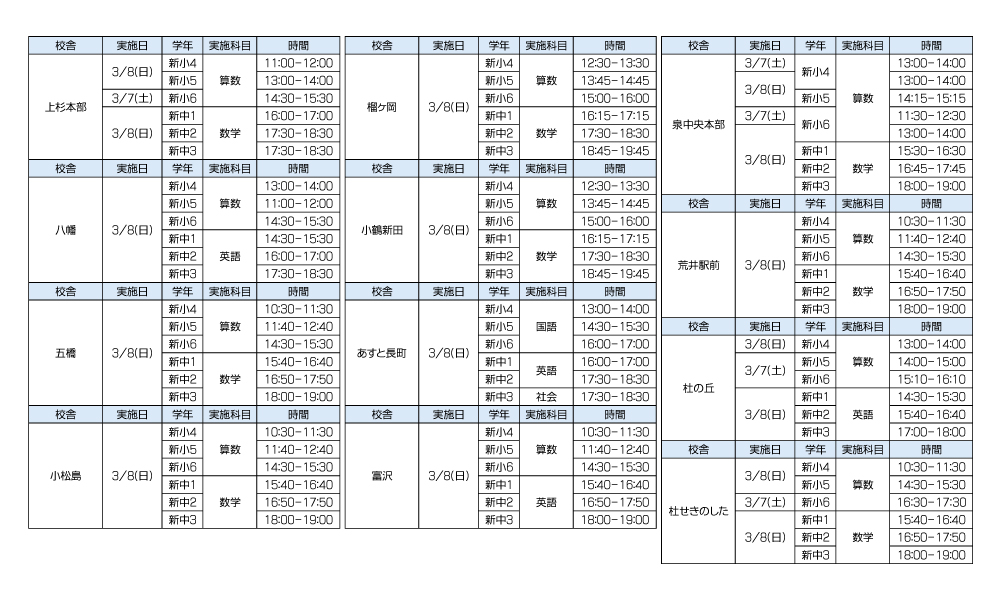 * 3/7(土)・8(日) 全スクールで実施 *